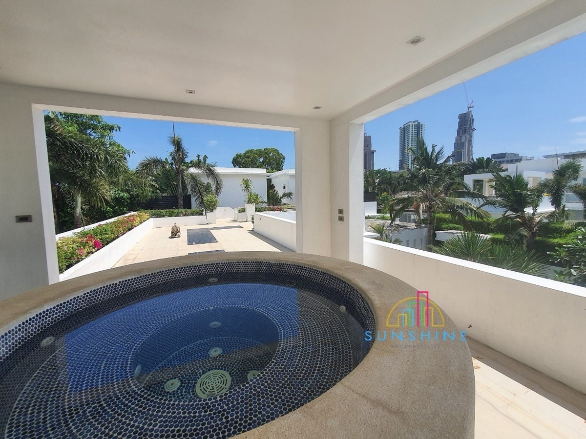 This property is the perfect example of impeccable modern architecture which it's 484 sqm. of land plot and 224 sqm. of living area. Everything about the place is vibrant and new. The terrace area is the perfect place to relax with a jacuzzi on the roof top or BBQs area. There is a garden area for children to play and families and friends to have picnics and BBQs. It really is the kind of place that you have to experience for yourself, just to see how brilliant it really is.