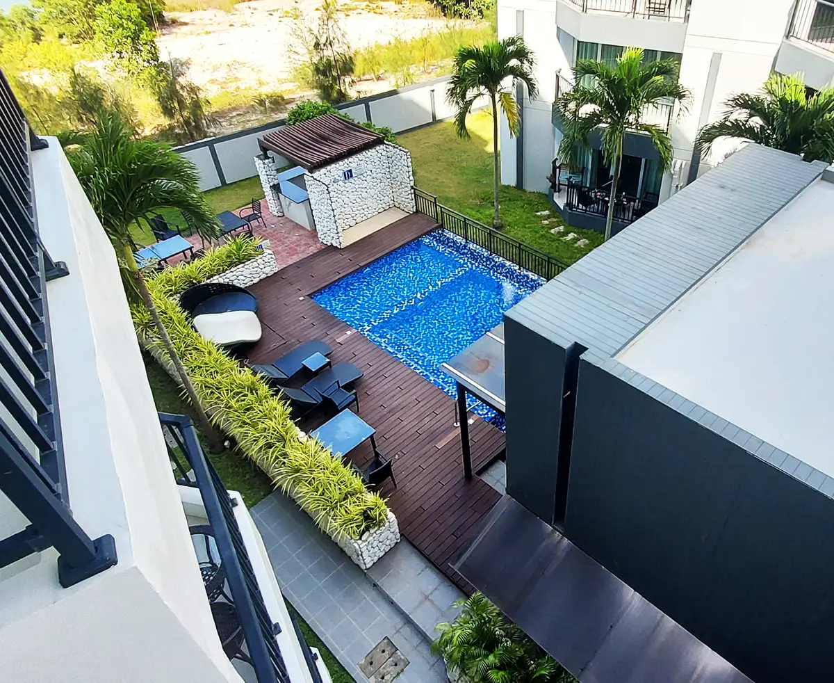 Smart floor plan solutions, top notch designs while all units offering views of the shimmering pool- areas and tropical garden from the windows and the walk-out terraces.