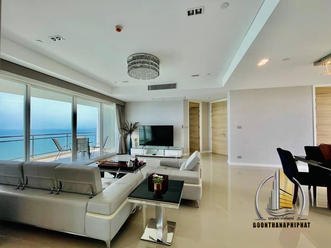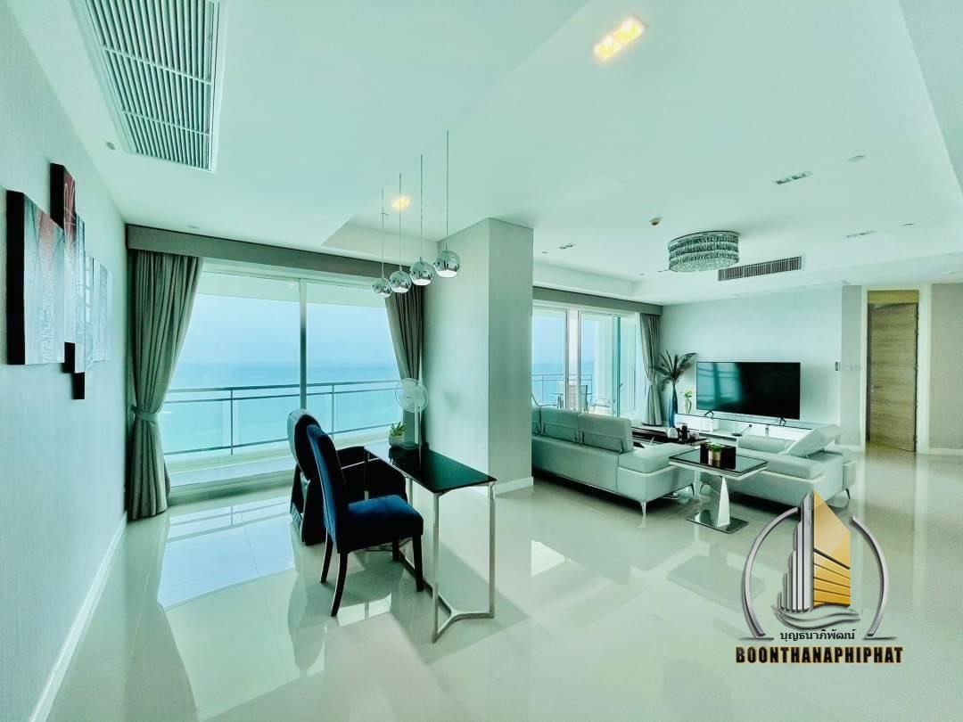 Luxury 3 bedroom condo for rent in Reflection Jomtien, Pattaya, high floor with panoramic sea view. This property is very spacious large unit size 216 sq.m., 3 Bedrooms, 4 Bathrooms, on high floor 30+, comes with beautiful panoramic sea views across Jomtien bay. Good quality fully furnished and appliances, European kitchen, Bathtub and Ready to move in.