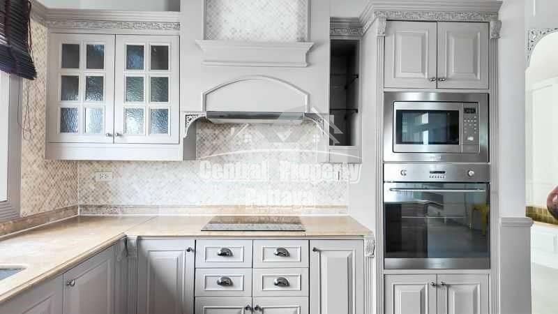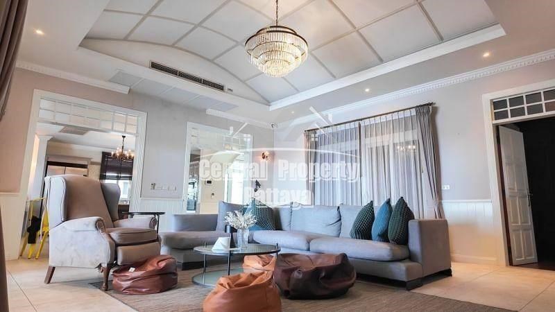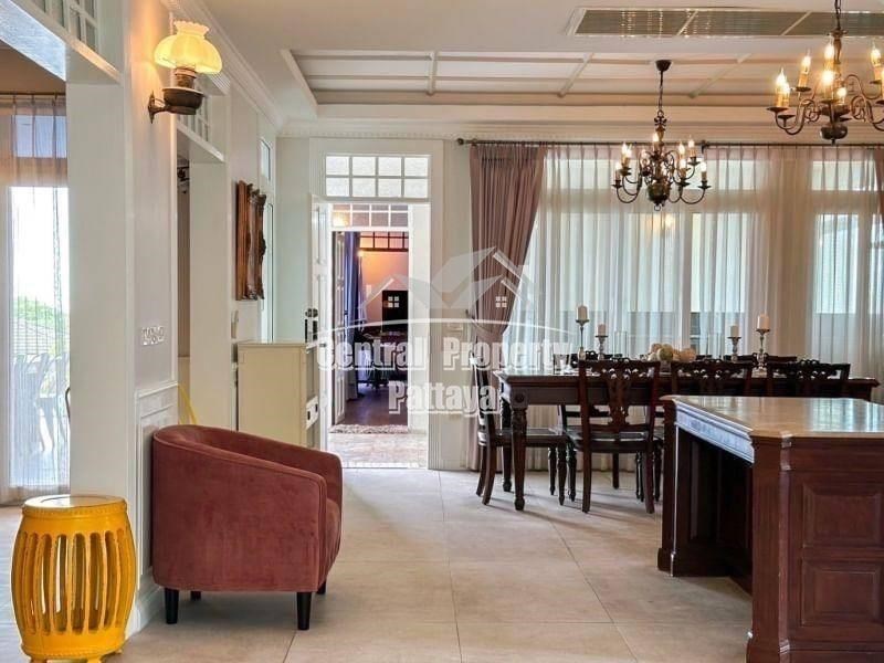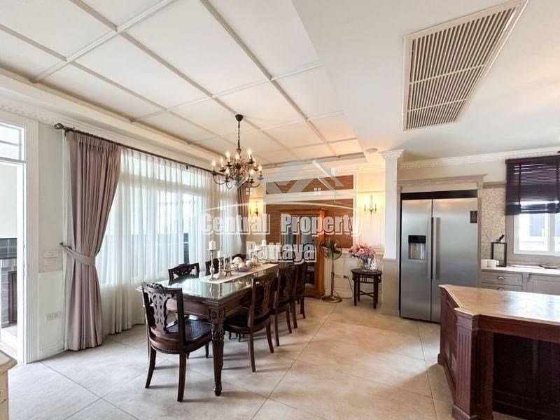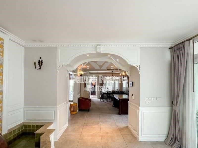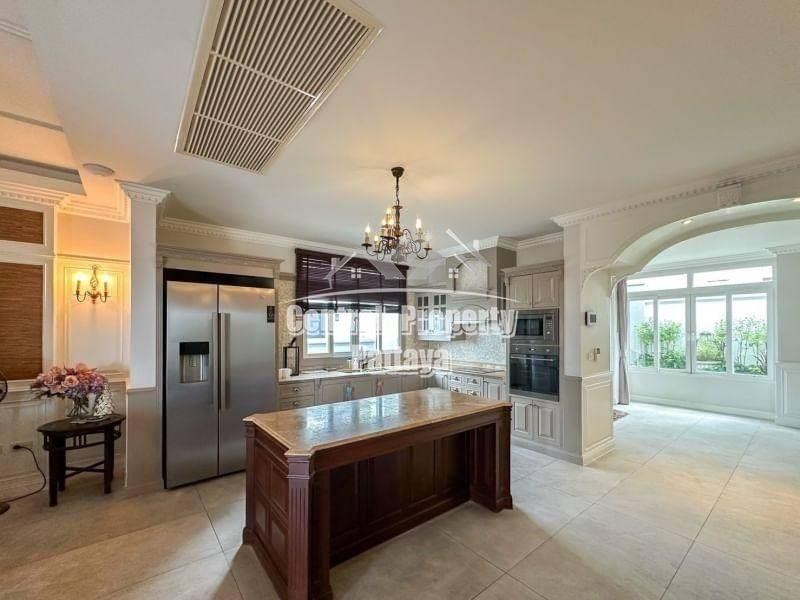 Nestled in the prestigious Siam Royal View, this stunning 6-bedroom, 5-bathroom villa exudes elegance and comfort. The property boasts a blend of modern luxury and timeless European-inspired architecture, featuring high ceilings, intricate moldings, and grand archways.