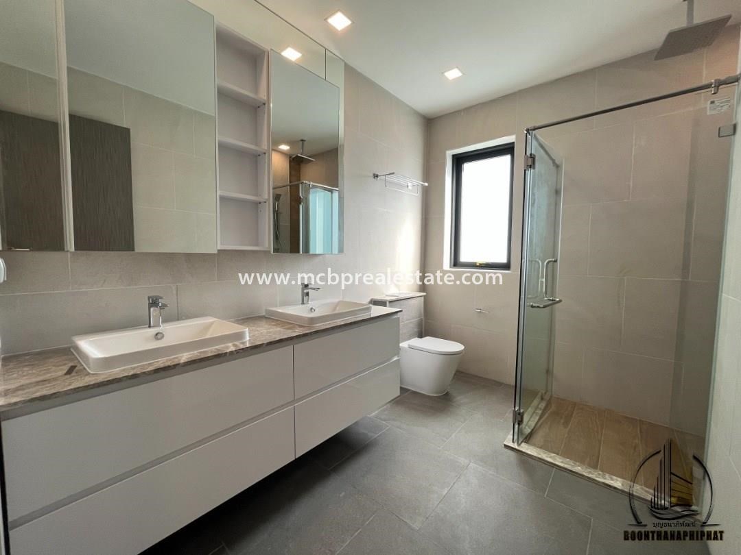 A beautiful pool villa has Three bedrooms all ensuite, 4 bathrooms, private swimming pool, Land sizes from 240 to 300sqm. High-quality built-in wardrobes incl master bedroom walk-in closet. Two upstairs balconies, Luxurious modern bathrooms with top-end fixtures and fittings. Large modern hi-gloss European kitchen with large split-level island, Inverter air-cons throughout. Powder-coated black aluminium windows and sliding doors, Full home automation/smart-home. Interior & terrace space approx. 232sqm. Single garage Fully landscaped Garden. Roller garage doors, Key-less entry systems.