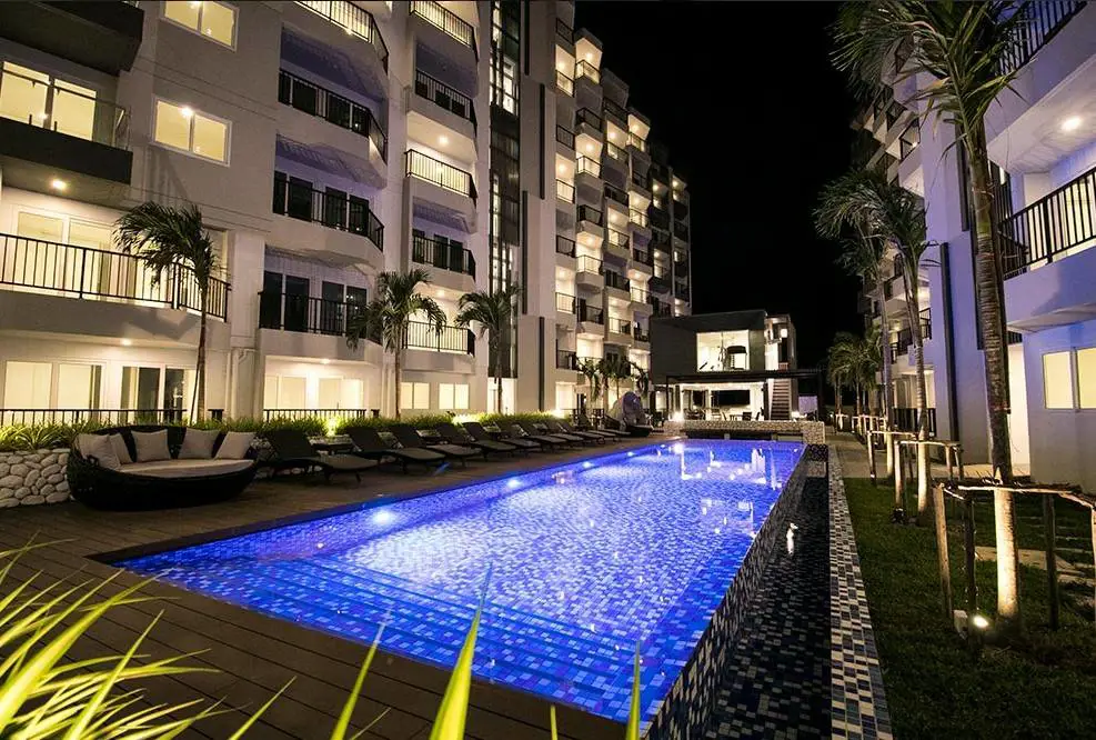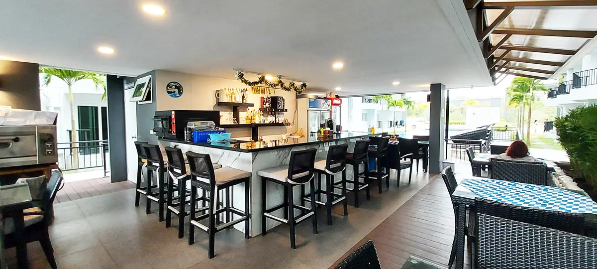 The condominium has 156 condos and 2 pools, a main pool and a relax pool, with associated pool deck. By the pools there is a combined restaurant and bar. There is also a barbecue area for private parties, as well as a fitness center. The condominium has a total of 8 floors.
