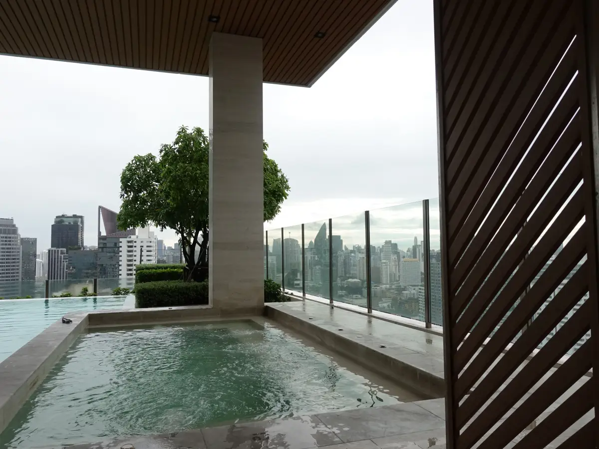 Floor: infinity-edge swimming pool, warm-water pool, kids’ pool, music rehearsal room, karaoke, co-kitchen & sunset balcony