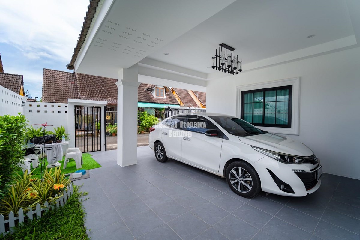 Outdoors, you’ll find your own private swimming pool with a relaxing patio area, perfect for enjoying Pattaya’s tropical climate. A small garden and shaded carport provide both charm and practicality. Large sliding glass doors allow natural light to flow throughout the home, creating a bright and welcoming atmosphere.