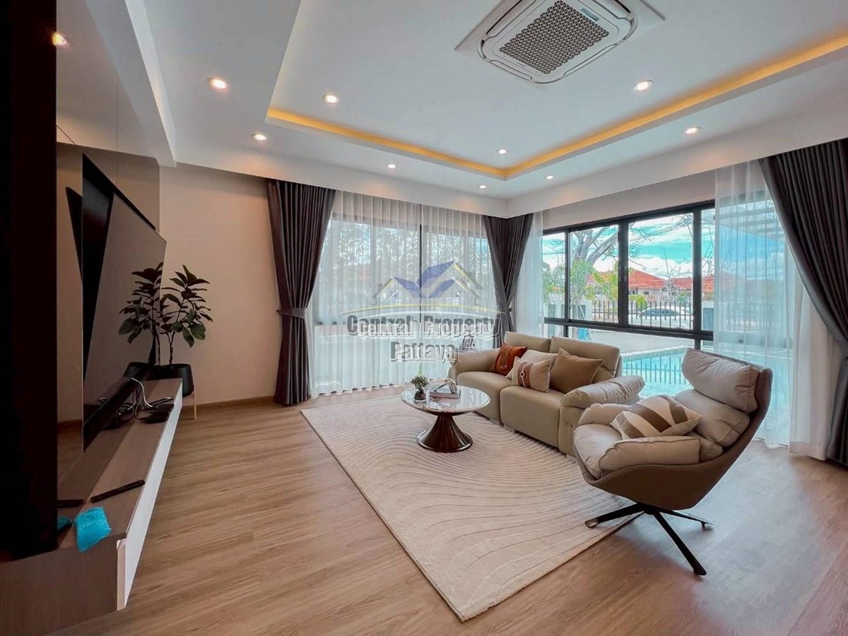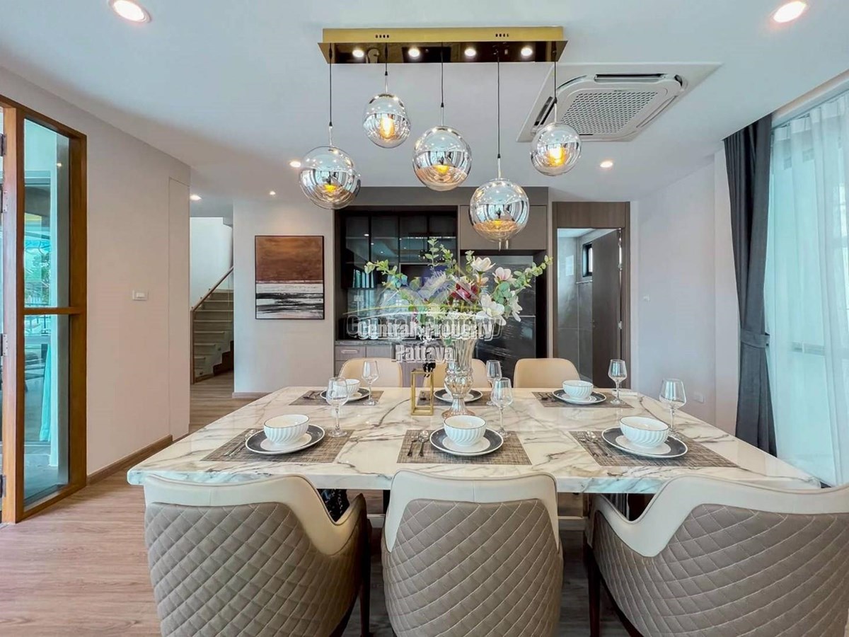 Step into contemporary elegance with this stunning 372 sqm pool villa, designed for modern family living and ultimate comfort. Located in a peaceful residential area of Pattaya, this home combines sophisticated architecture with everyday convenience.