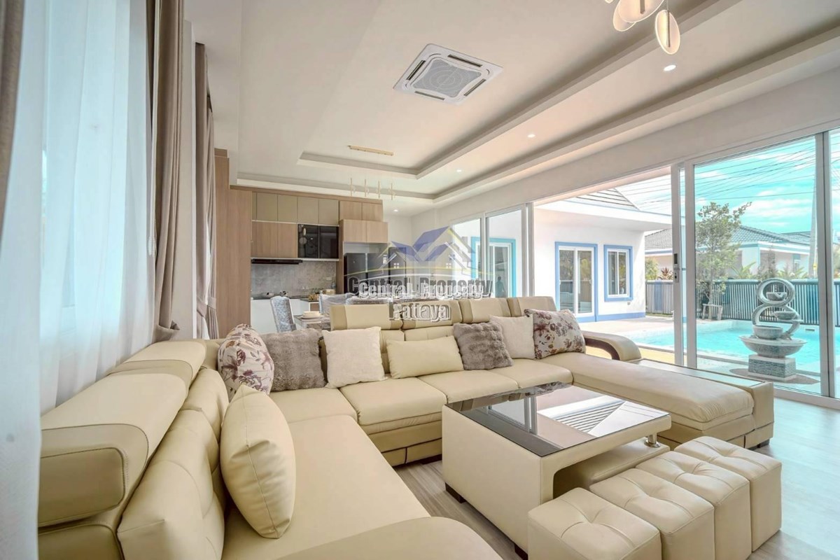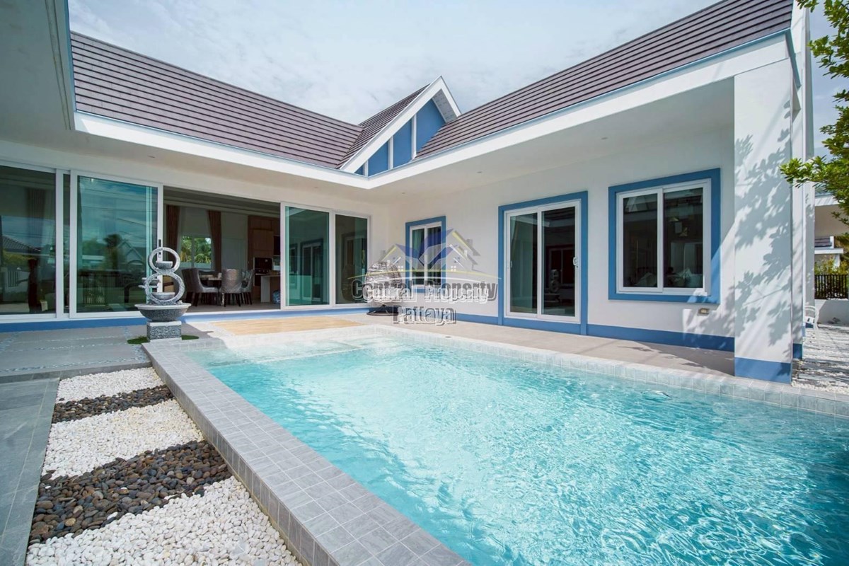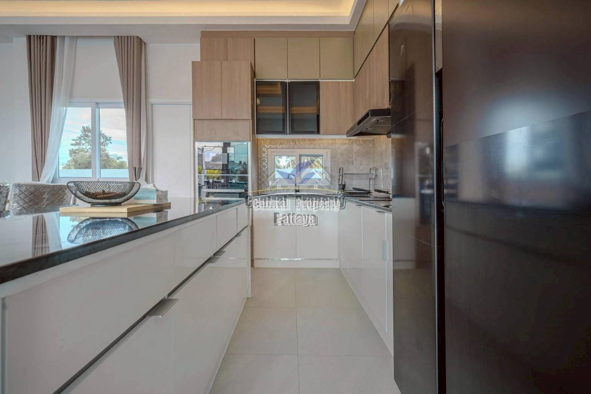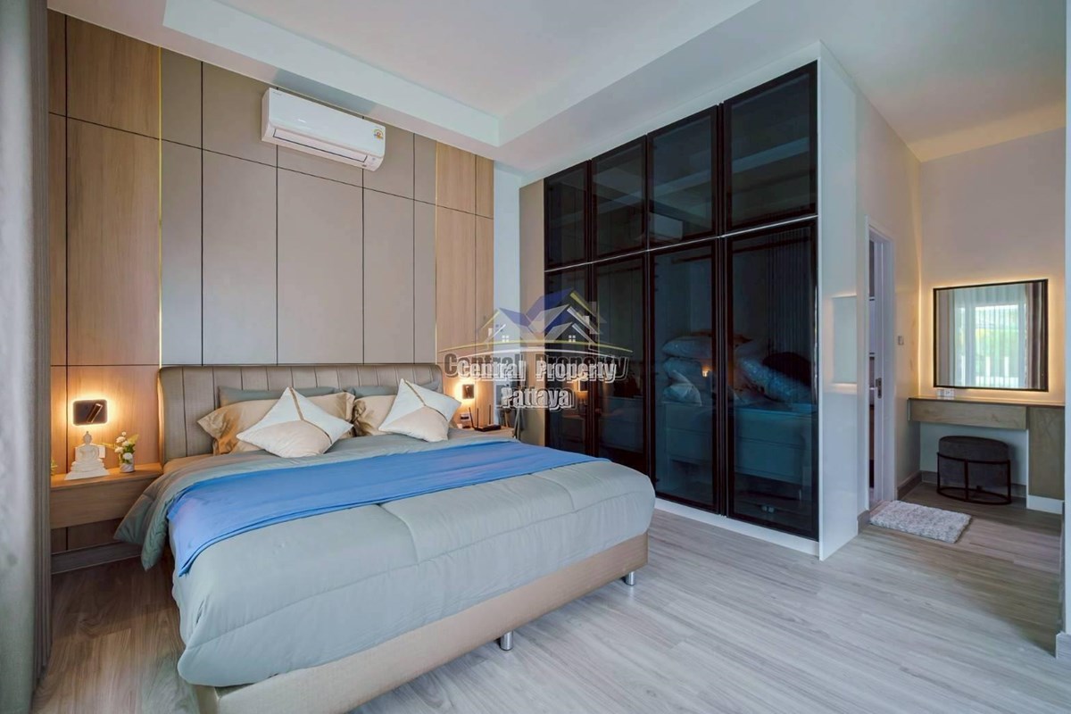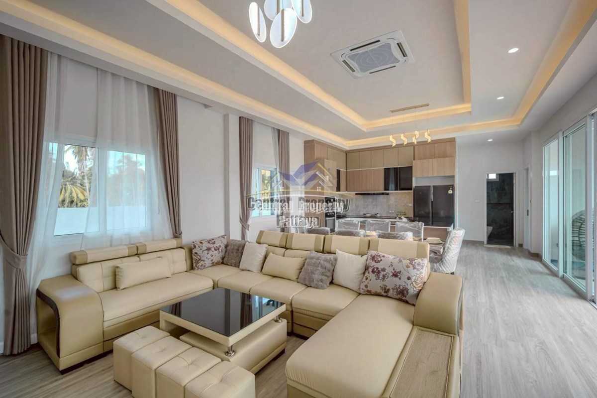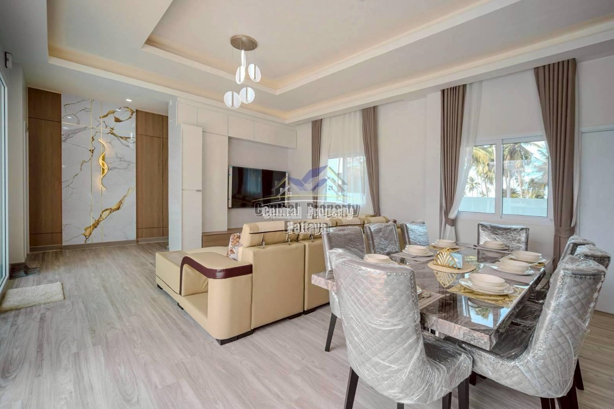 Experience elegant tropical living in this stunning 5-bedroom, 5-bathroom pool villa located just minutes from Maprachan Lake, one of Pattaya’s most sought-after residential areas. Designed with sophistication and comfort in mind, this 260 sqm home blends contemporary architecture with serene outdoor living.