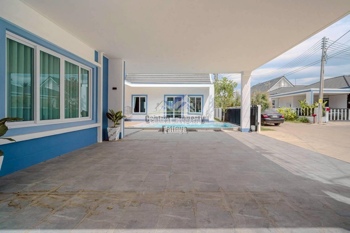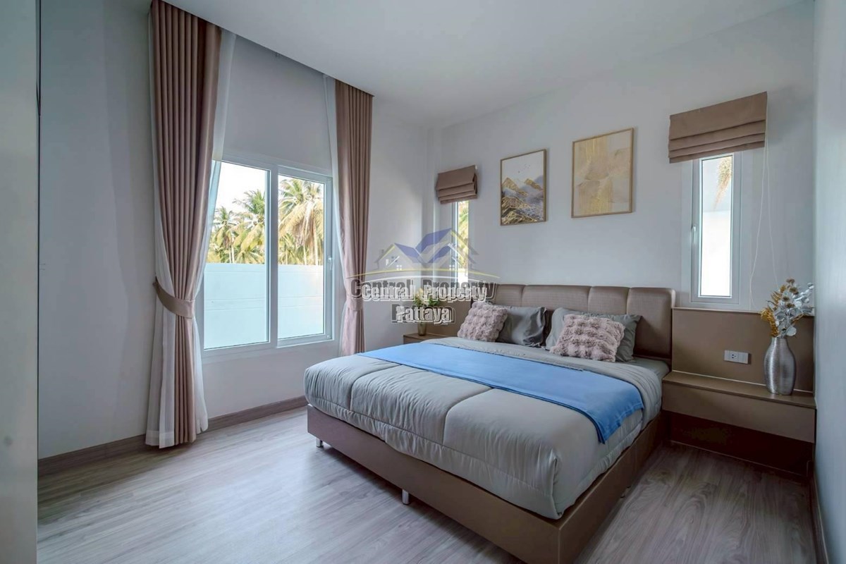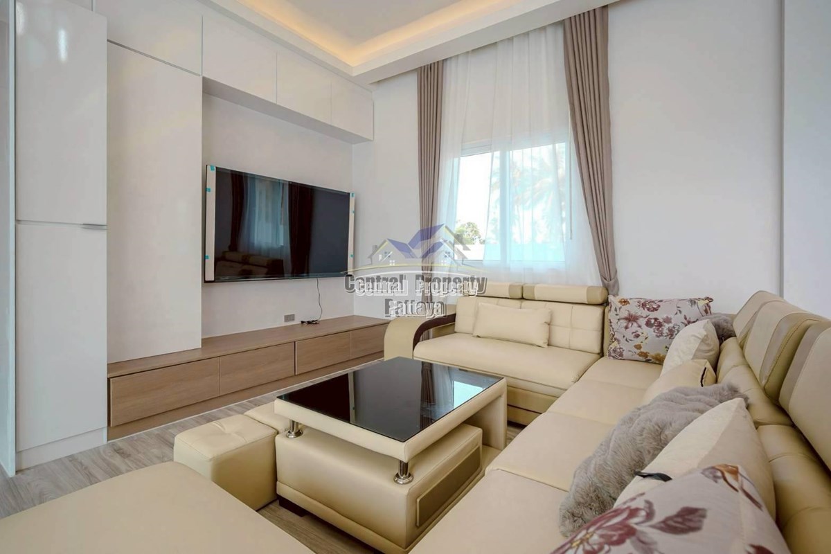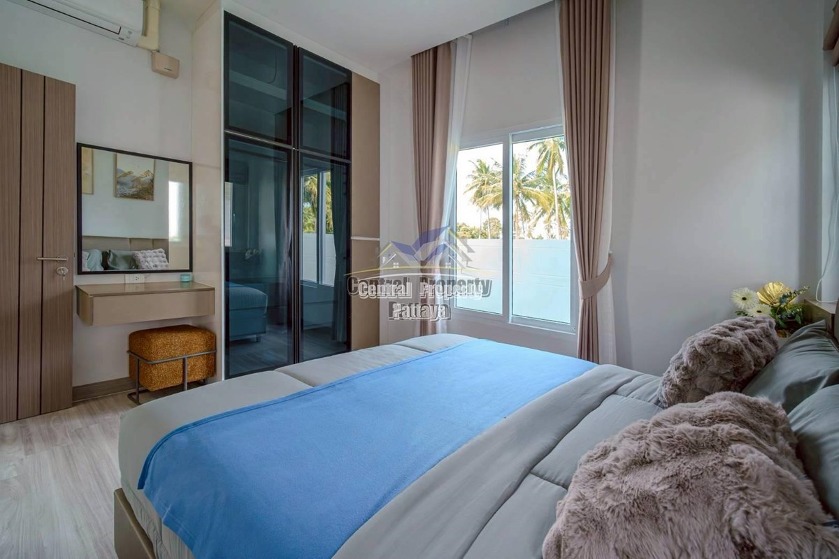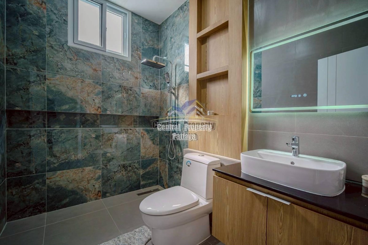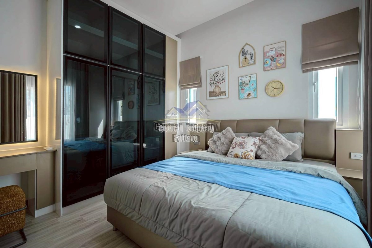 Experience elegant tropical living in this stunning 5-bedroom, 5-bathroom pool villa located just minutes from Maprachan Lake, one of Pattaya’s most sought-after residential areas. Designed with sophistication and comfort in mind, this 260 sqm home blends contemporary architecture with serene outdoor living.