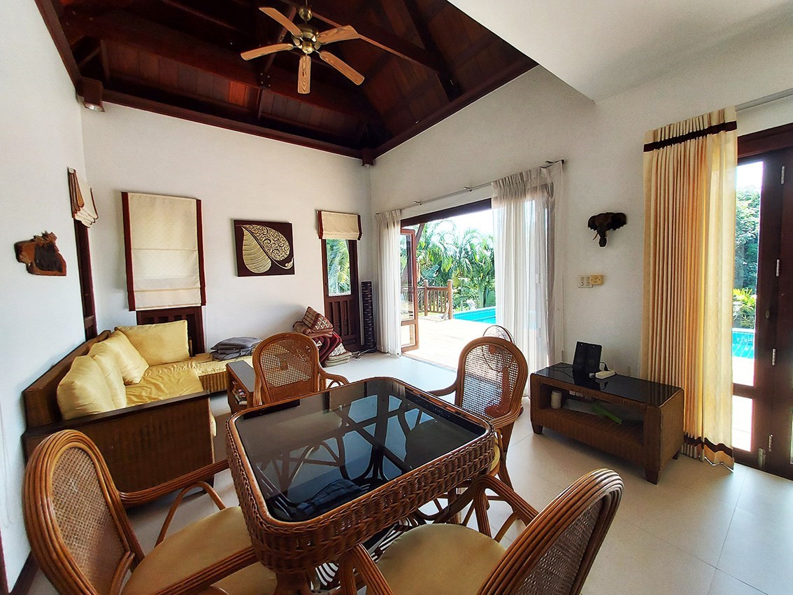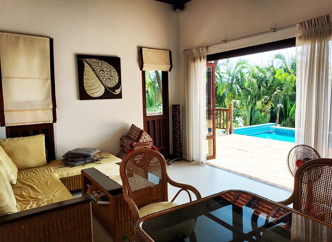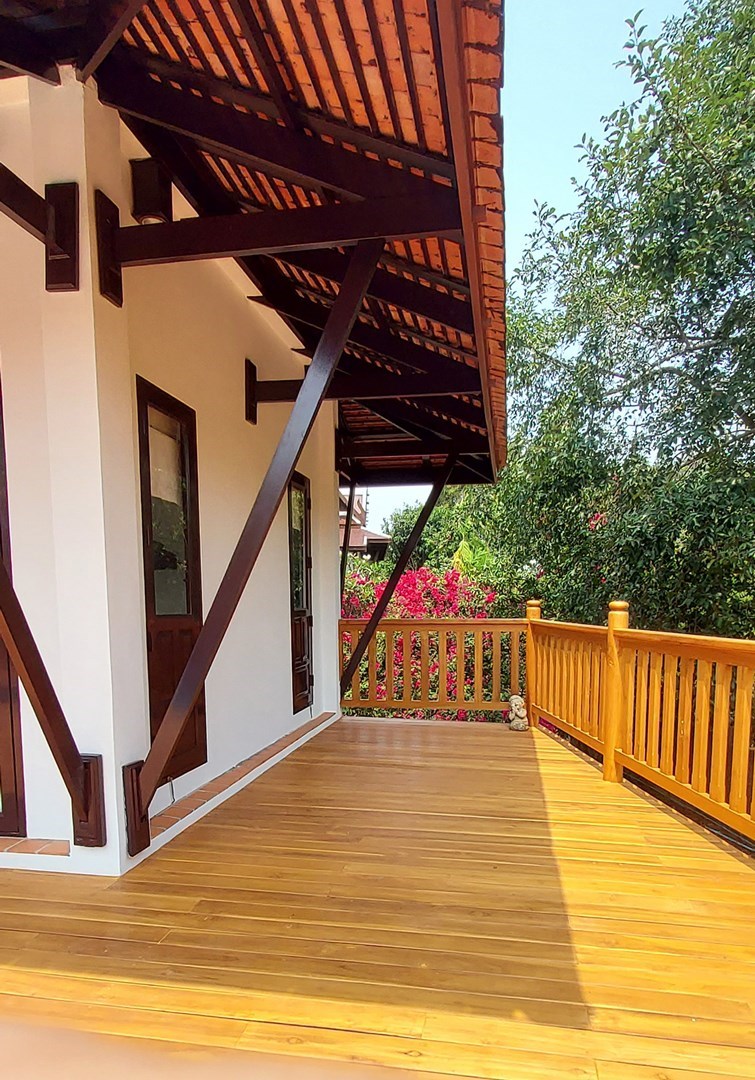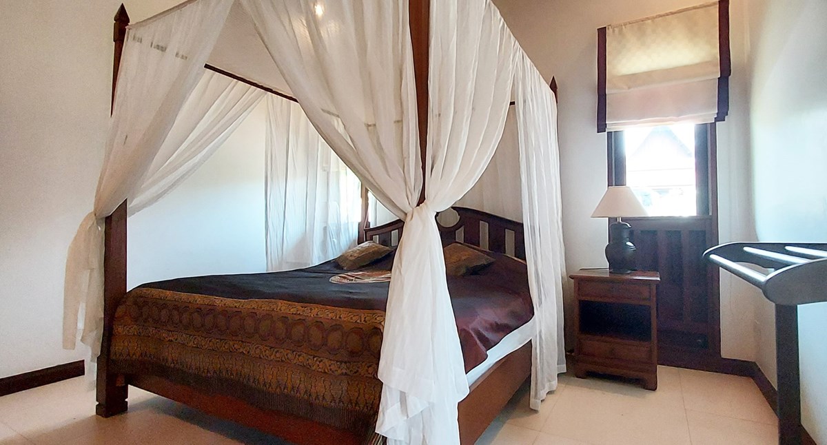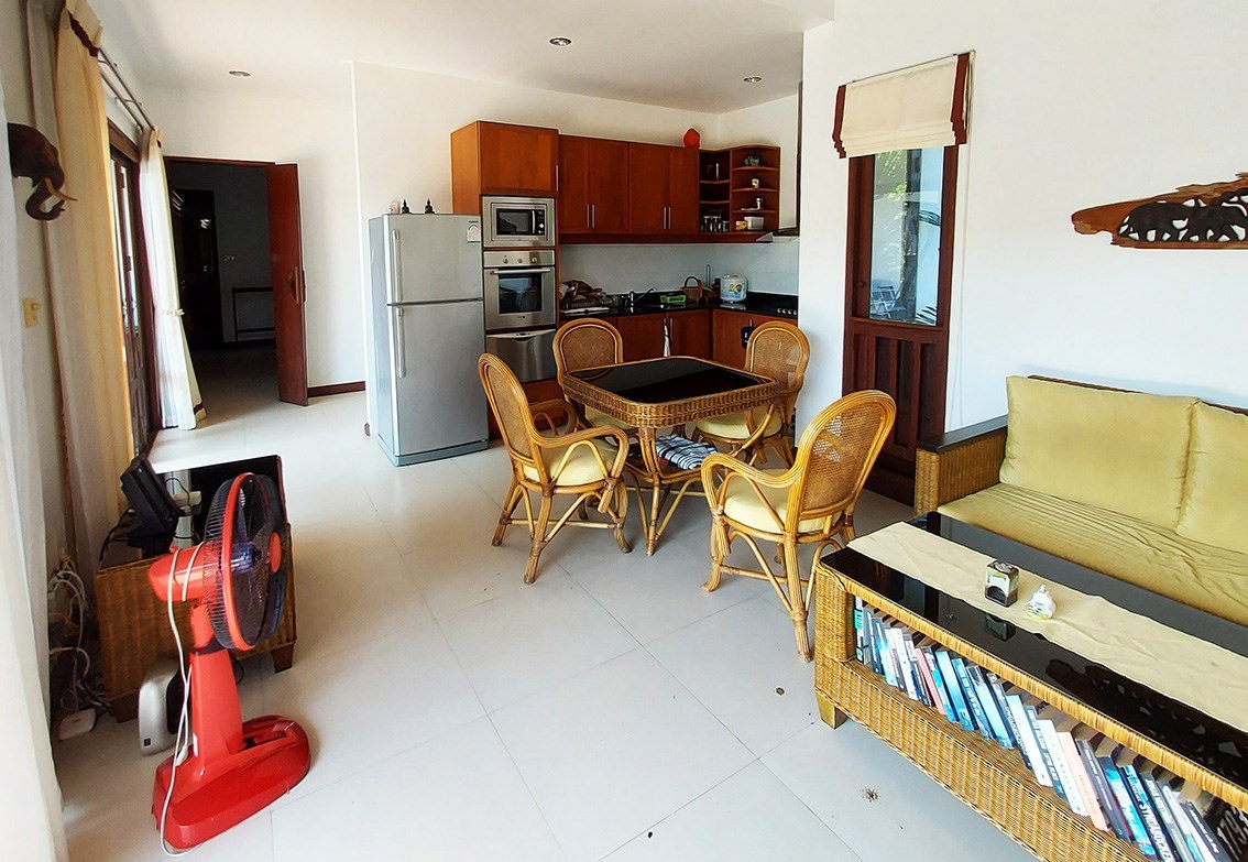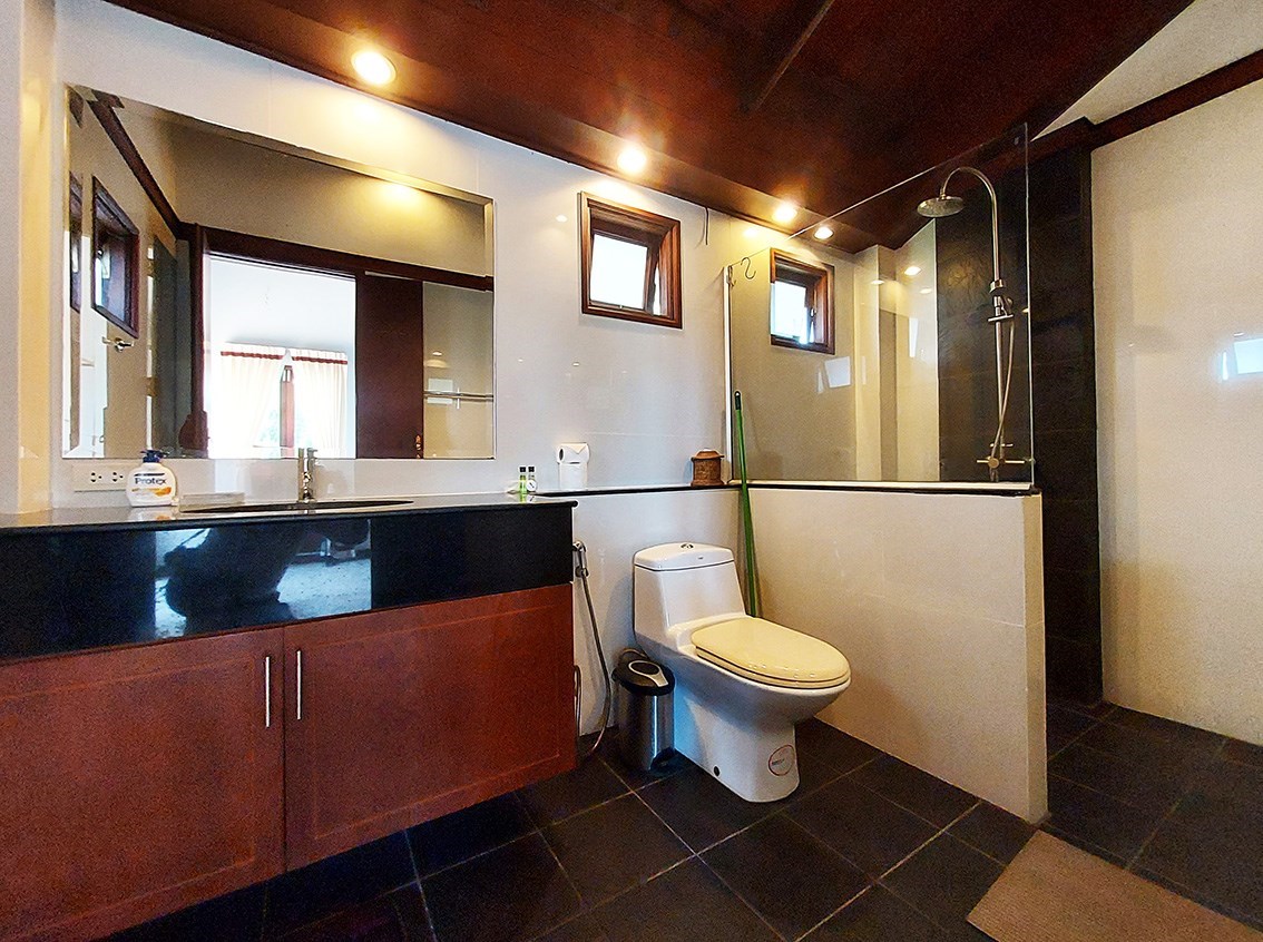 The villa is located on a plot of 385 sqm where you lease the land with an annual fee of only 15,000 Baht. Of the current agreement of 30 + 30 + 30 years, about 80 years remain and they are transferred to the new owner. But there is the possibility for a Thai citizen to buy out the property in accordance with the current land lease. A very good opportunity to be able to buy land so close to the beach.