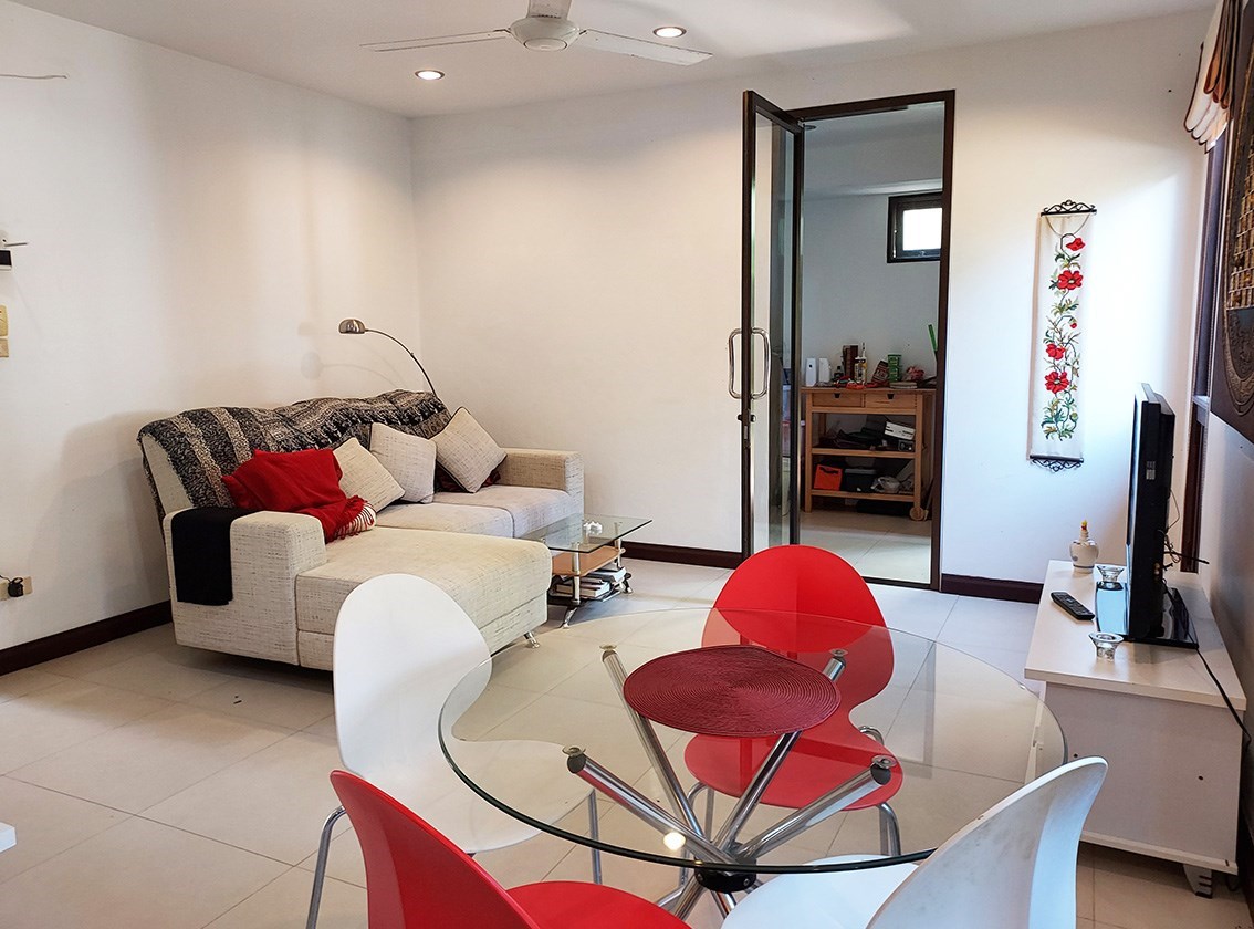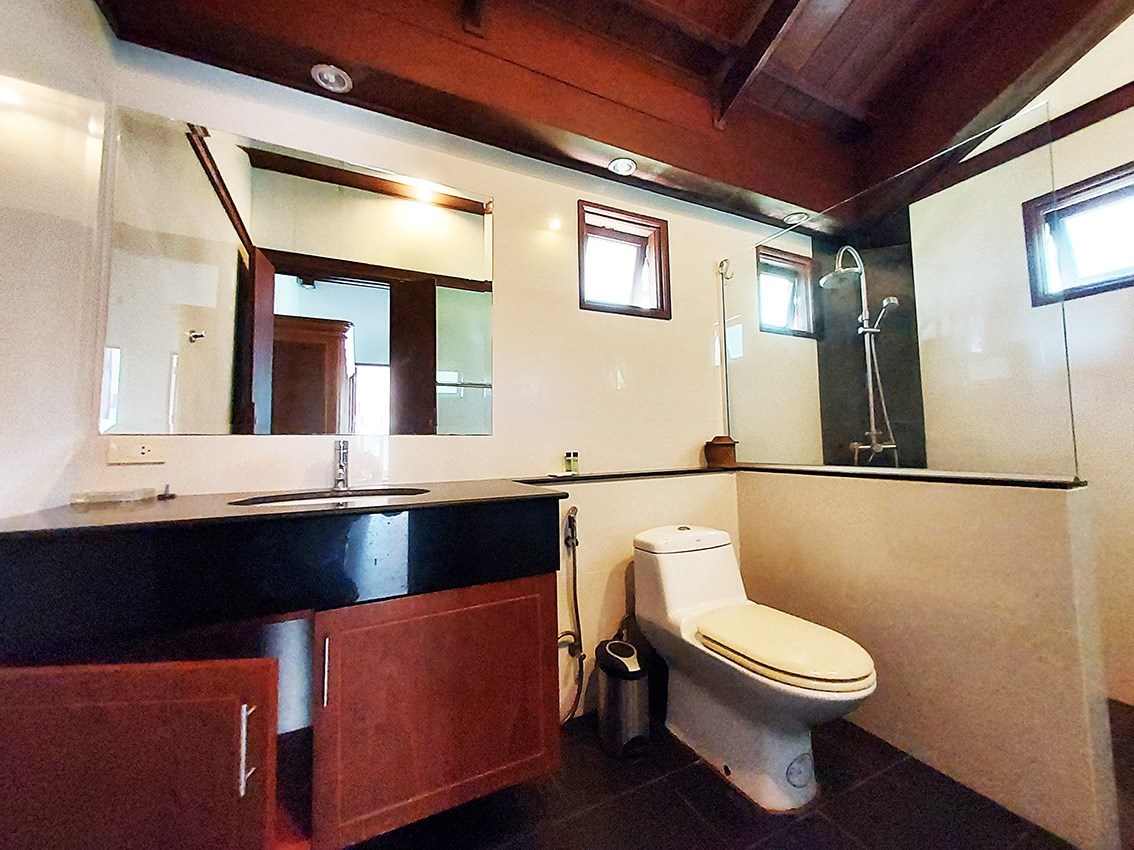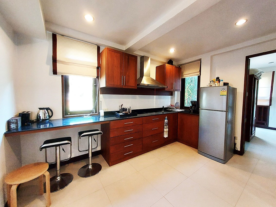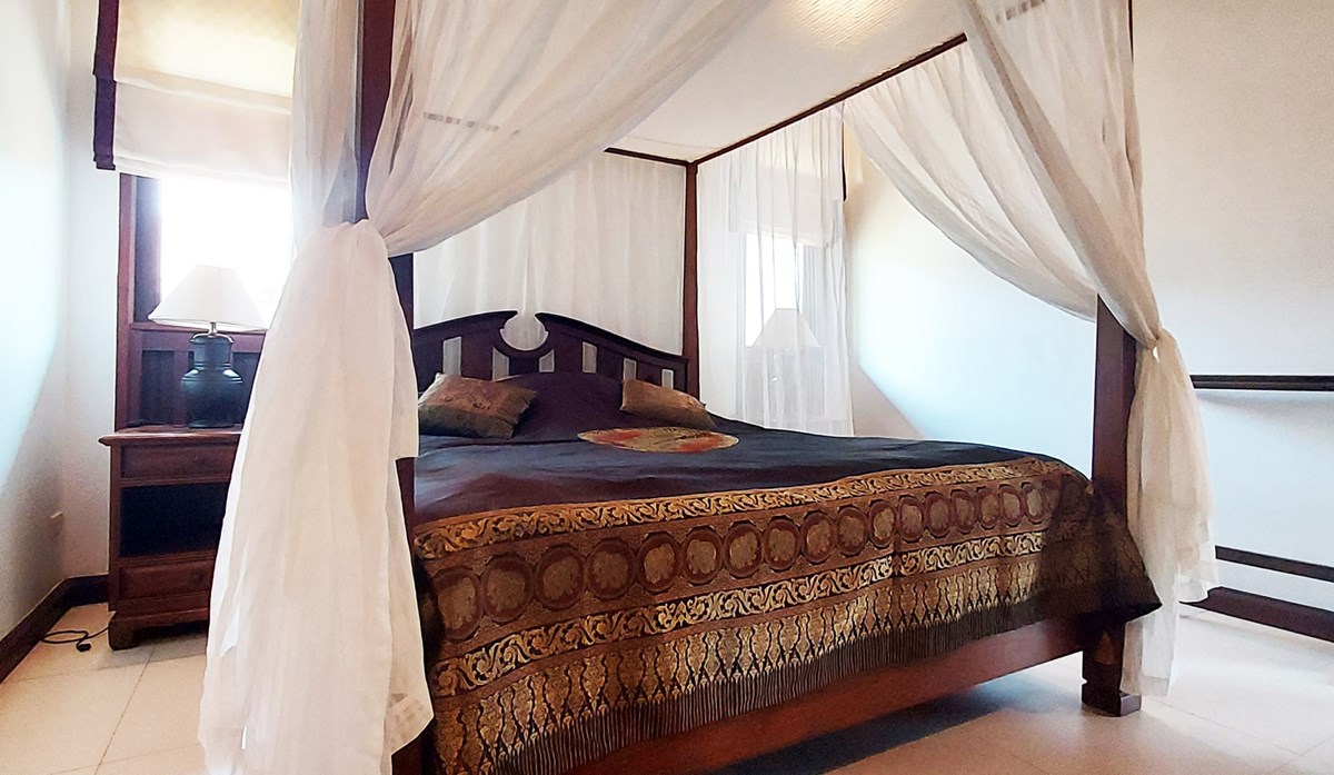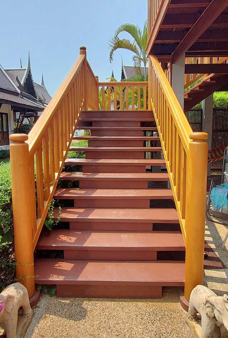 The villa is located on a plot of 385 sqm where you lease the land with an annual fee of only 15,000 Baht. Of the current agreement of 30 + 30 + 30 years, about 80 years remain and they are transferred to the new owner. But there is the possibility for a Thai citizen to buy out the property in accordance with the current land lease. A very good opportunity to be able to buy land so close to the beach.