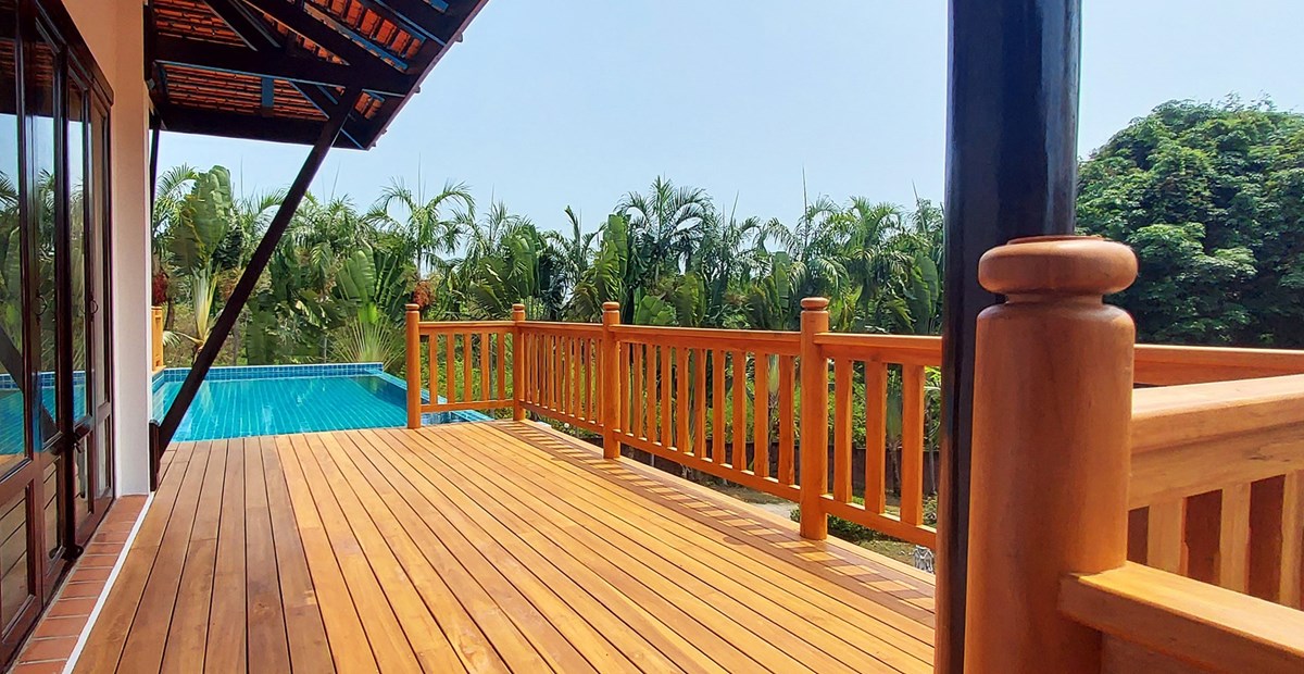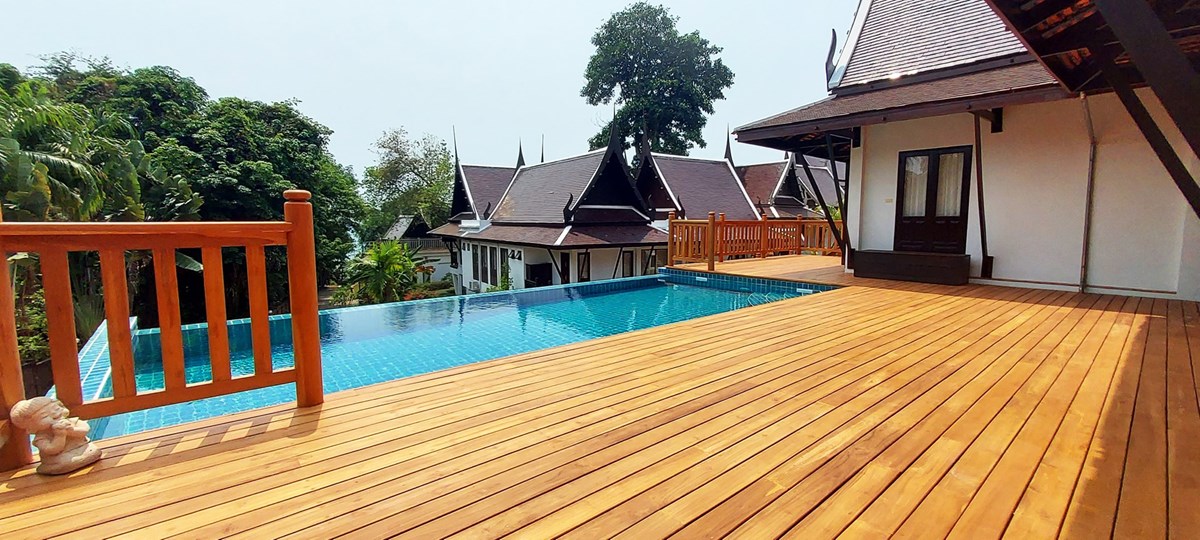 Cape Mae Phim Residence is a residential area with 26 villas built on a small mountain at the eastern end of Laem Mae Phim, Rayong with its 3 km long fine sandy beach. The villas are built in genuine traditional Thai style with many fine details in wood.