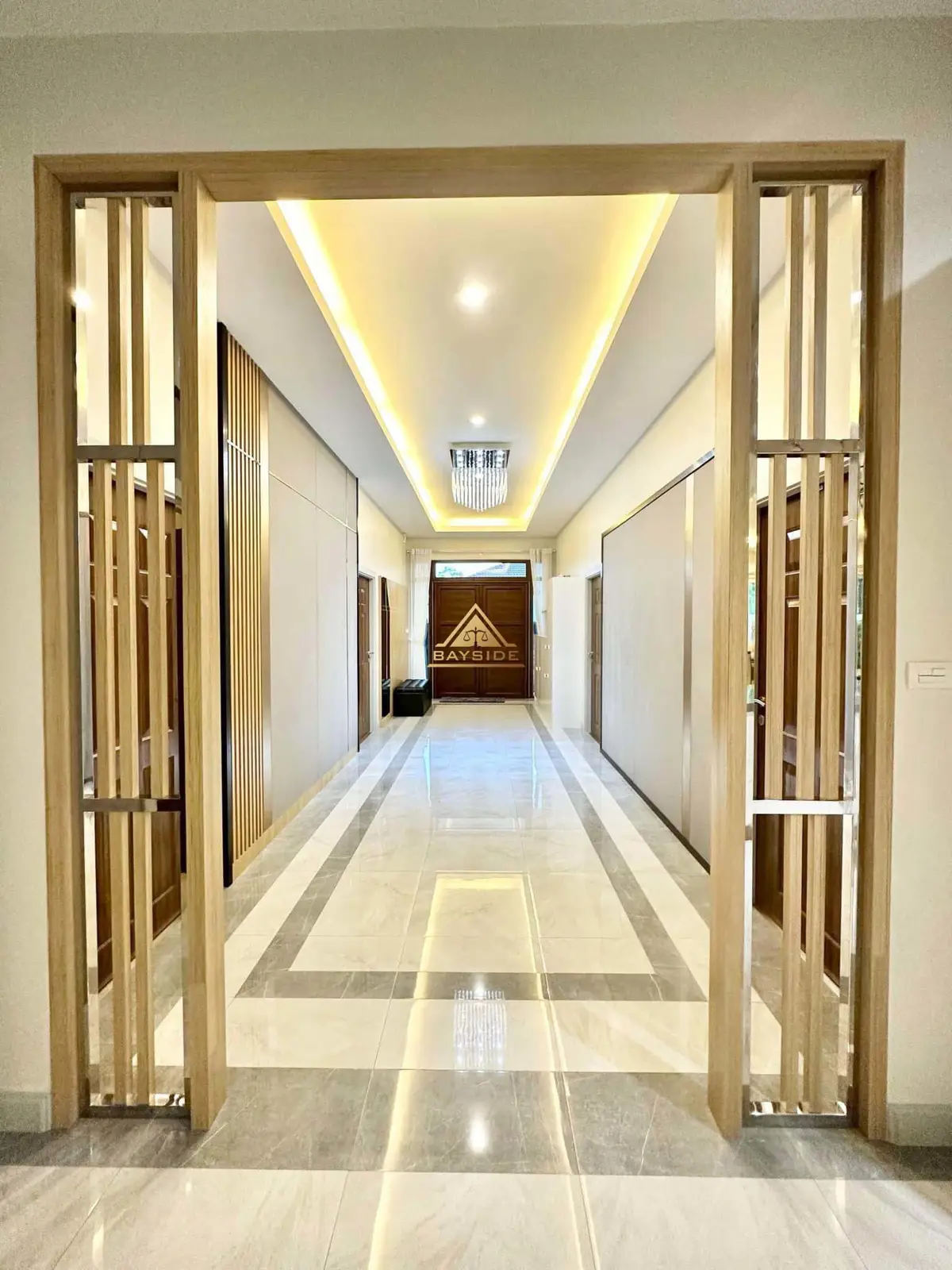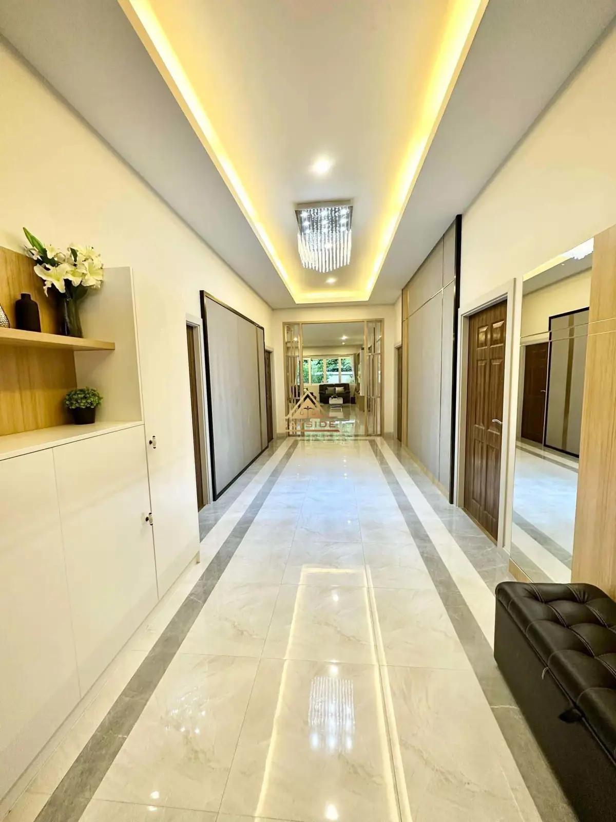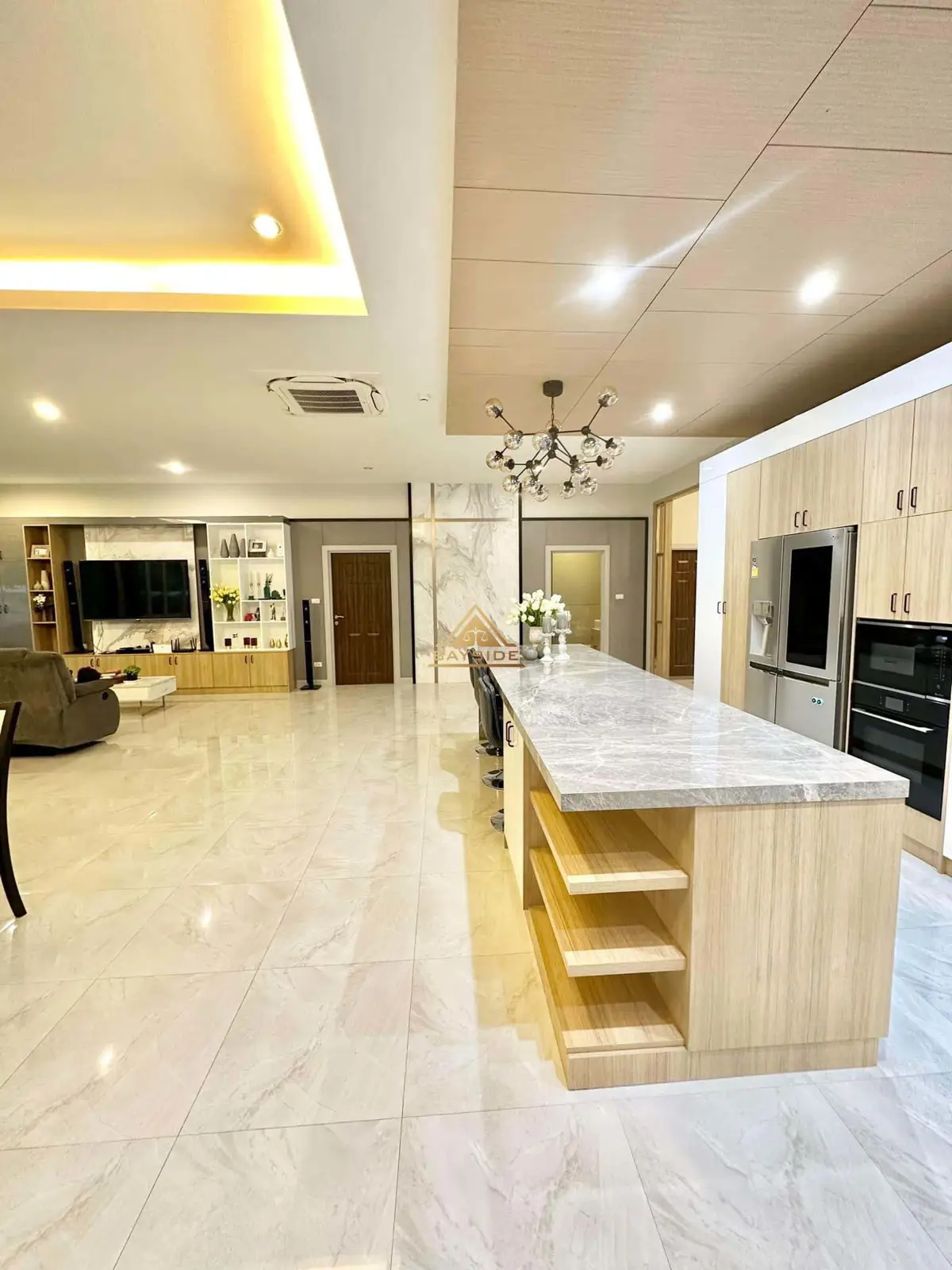 Modern style house 6 bedrooms 7 bathrooms, Store room, Land size is 860 Sqm. or 215 Sqw., Fully furnished, European kitchen, Dining table, Sofa, TV, Living area, Garden