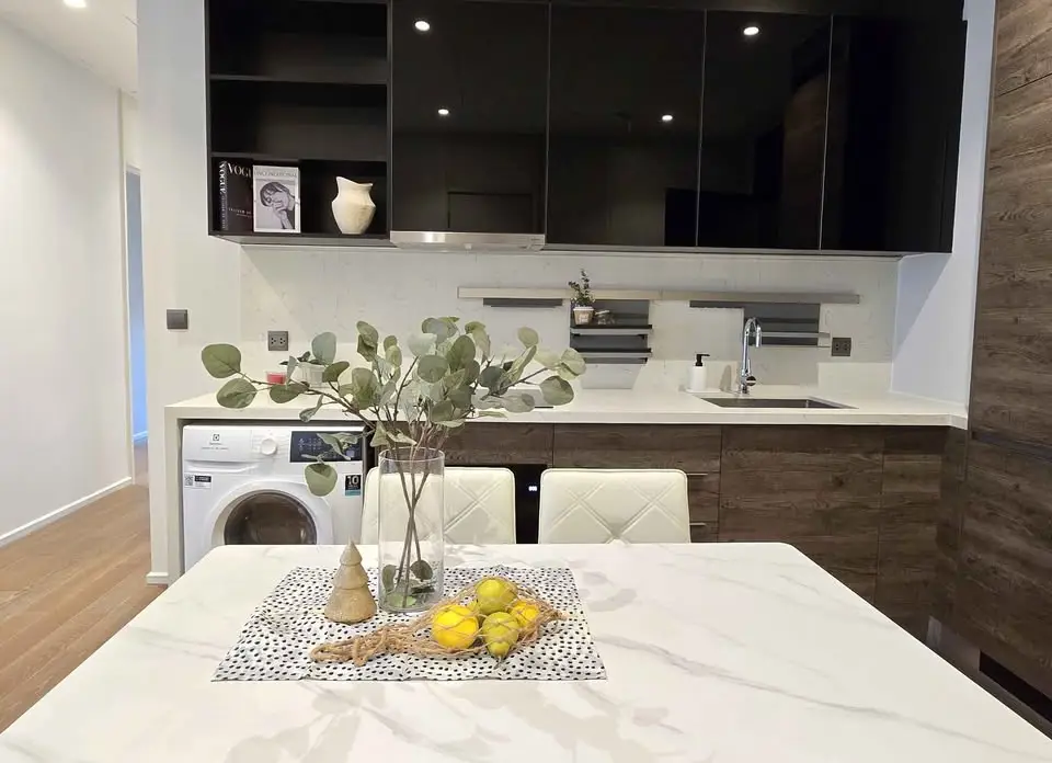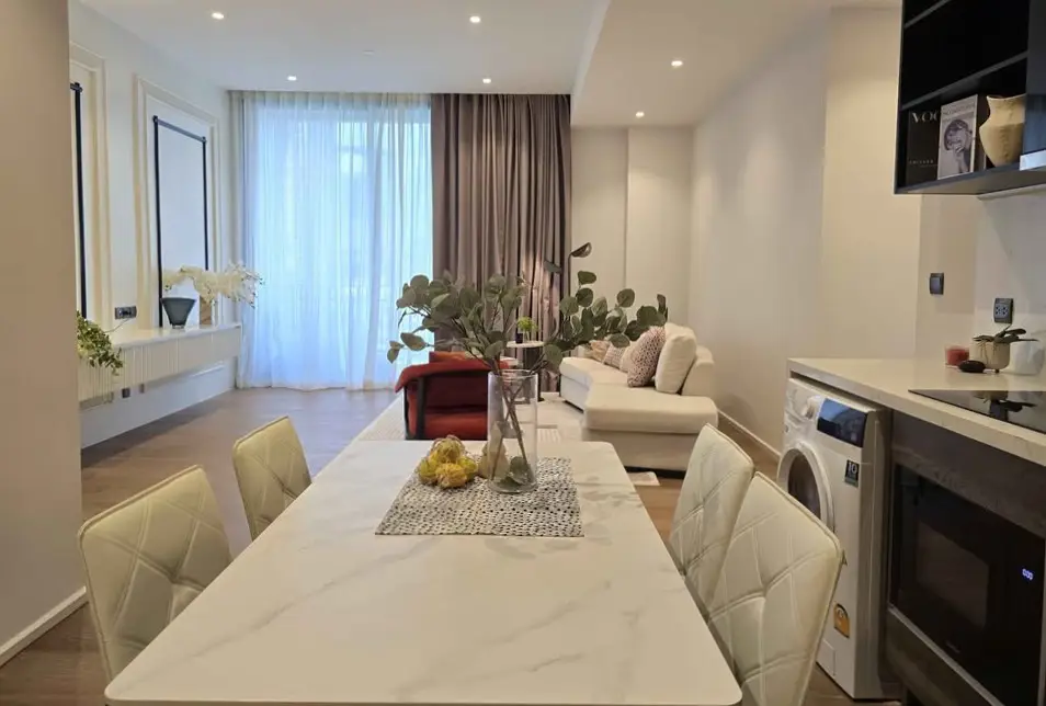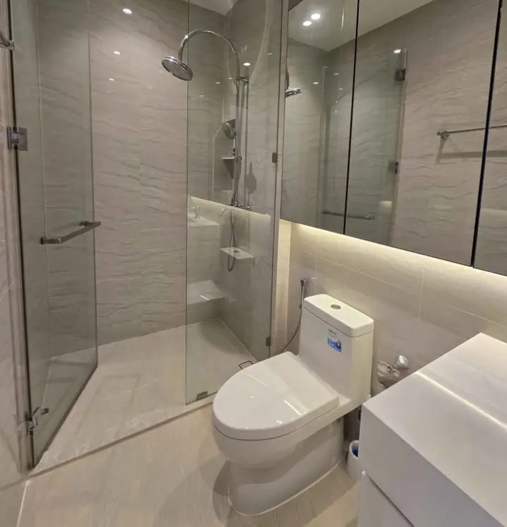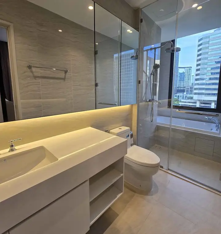 The residences at Muniq Langsuan feature spacious layouts with high ceilings, floor-to-ceiling windows, and premium materials imported from around the world. Each unit is meticulously designed to maximize comfort and aesthetics, with warm tones, luxurious finishes, and smart living features. Residents enjoy sweeping views of the city skyline and green park vistas, offering a serene escape in the middle of the city.