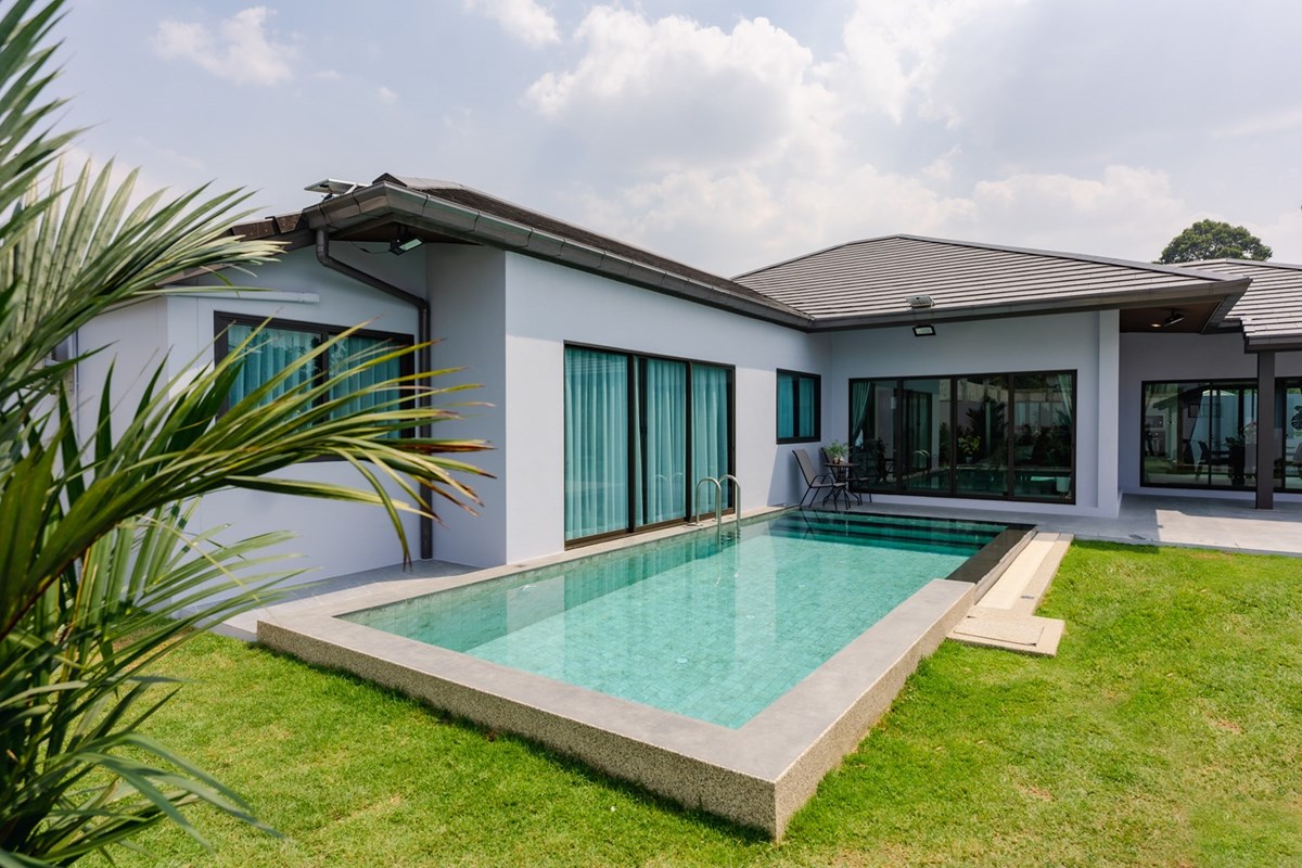 Newly Built Pool Villa in Huayyai, Pattaya For RENT. Available now!! The property sit on big land size 140 sq.wa or 560 square metters, 3 Bedrooms, 1 Eropean Kitchen, 1 Thai Kitchen, 1 Make Up room for the ladies, 1 Study, 1 Resort style pool (3m x 7.5m) with Jacuzzi, 2 car Garage with EV charging socket, 1 store room, Automatic gate, 24 hours CCTV and security guards.