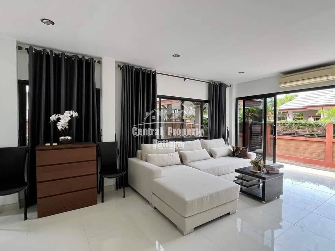 Spacious and modern, this recently renovated 4 bedroom, 3 bathroom villa is offered for sale in Thai/Company name in Dusit Pattaya Village. The contemporary interior is generous in size and is fully furnished, including a large European family kitchen, 4 large bedrooms and 3 modern bathrooms. There are fitted wardrobes throughout, stunning high ceilings, as well as substantial storage space and quality appliances included.