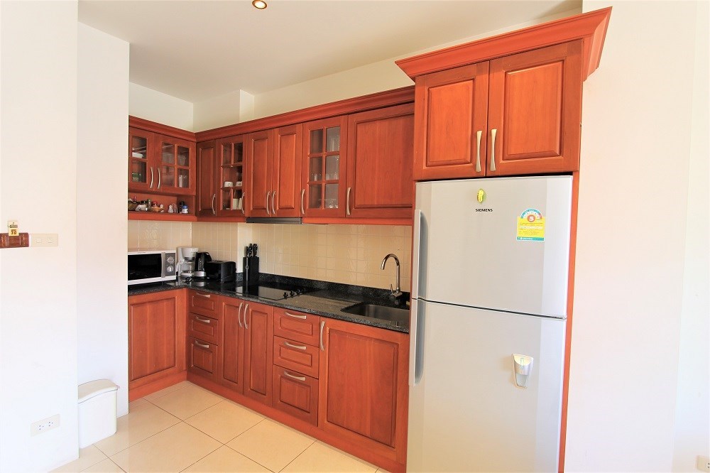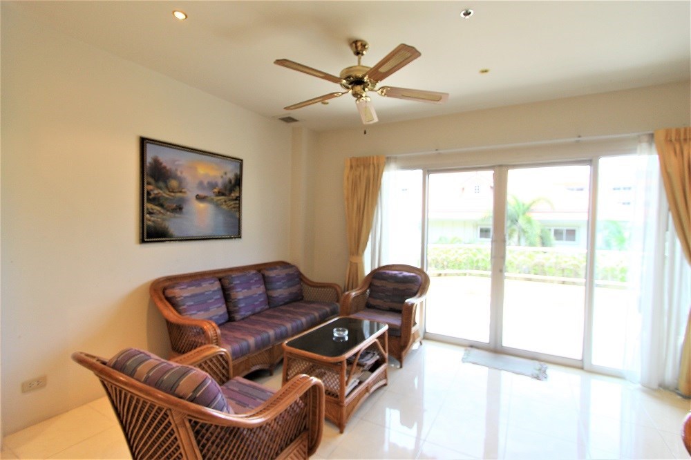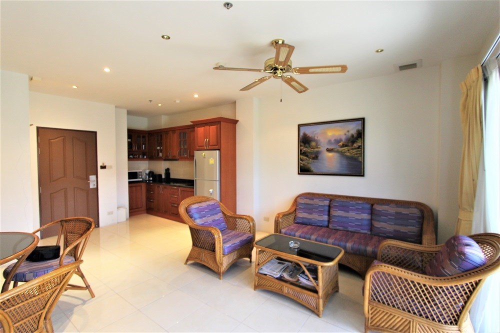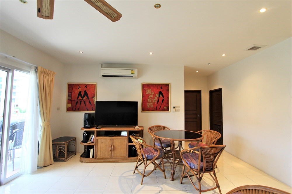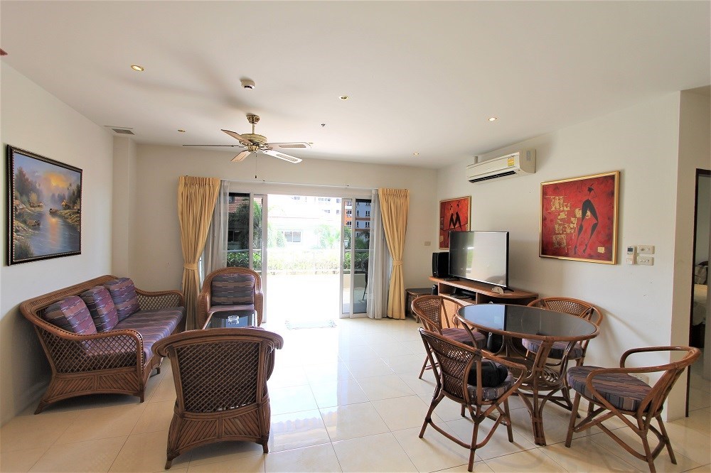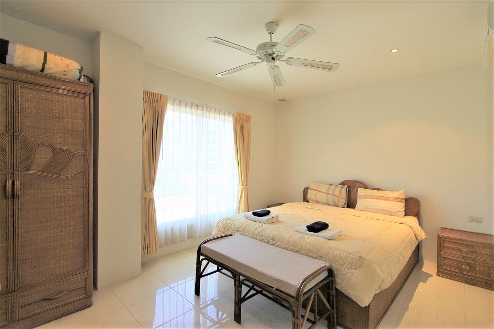 This two bedroom condo is located on the third floor with a nice garden and pool view, partial sea view from the balcony, it comes fully furnished and is situated on the quiet area of Pratamnak Hill.