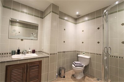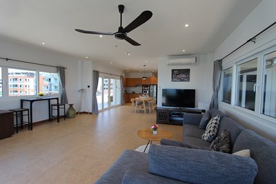 Inside we have 3 bedrooms all with windows. A master bedroom en-suite and the other two bedrooms share a large bathroom. A full European kitchen there is a large dining area and a very large living area. You get great views from any part of this condo sitting in the the living room or dining room you have beautiful sea views.