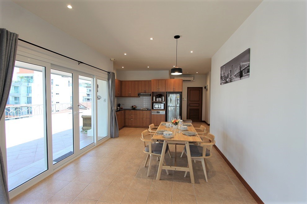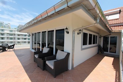 It has a total size of 247 sq.m with the inside being 121 sq.m and the terrace which wraps around three sides of the unit is 126 sq.m.