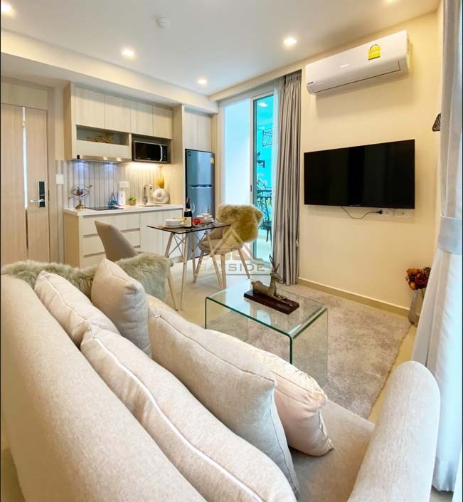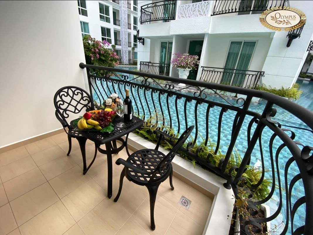This unit is studio room and pool view ! balcony close to swimming pool come with European kitchen, fully furnished, dining table, Flat Screen TV, usable area 28 Sqm !!
