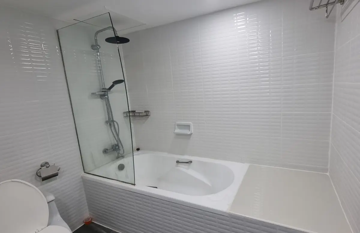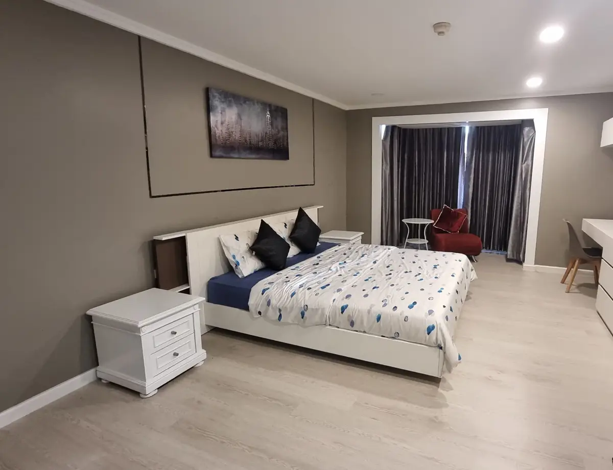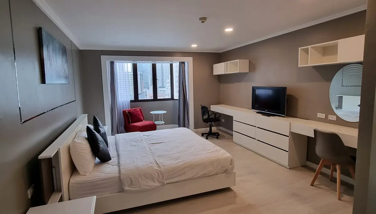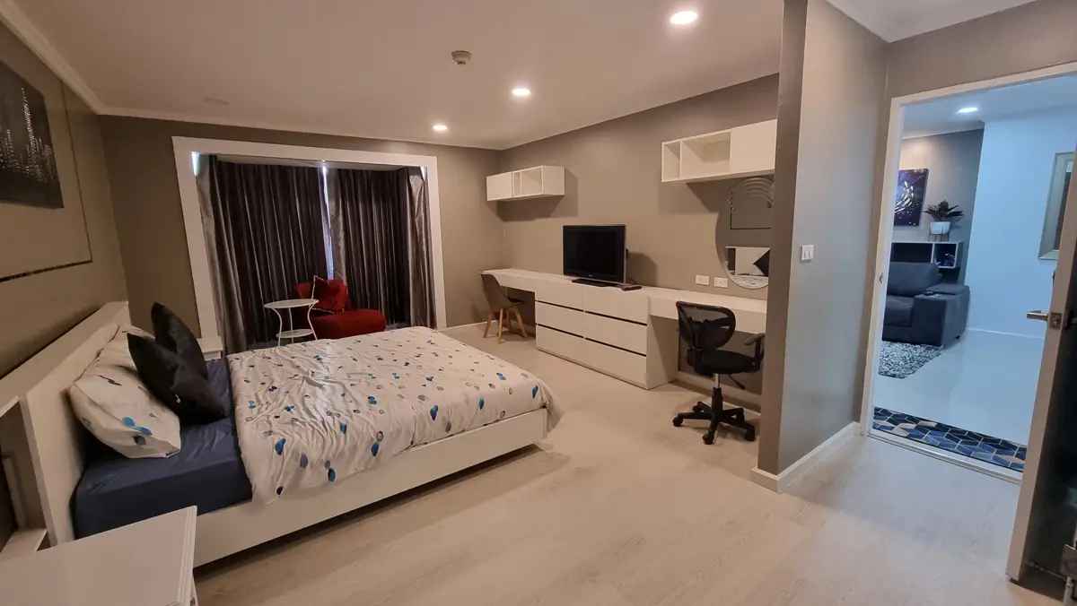 This is a spacious 1 bedroom condo on the market foe sale with a tenant at Omni Tower on Sukhumvit 4, Nana. The renovated property comes fully furnished and measures 65 sqm. The condo has a fully equipped kitchen, work space and pleasant pool view. Omni Tower has a swimming pool, gym, parking and security service. Nana BTS Skytrain Station, Benjakitti Park and Sukhumvit Road are within easy reach and there are plenty of places to eat and relax in the local area.