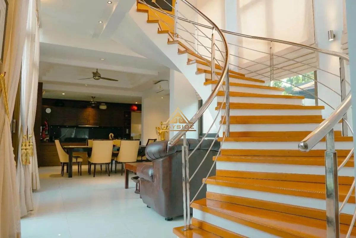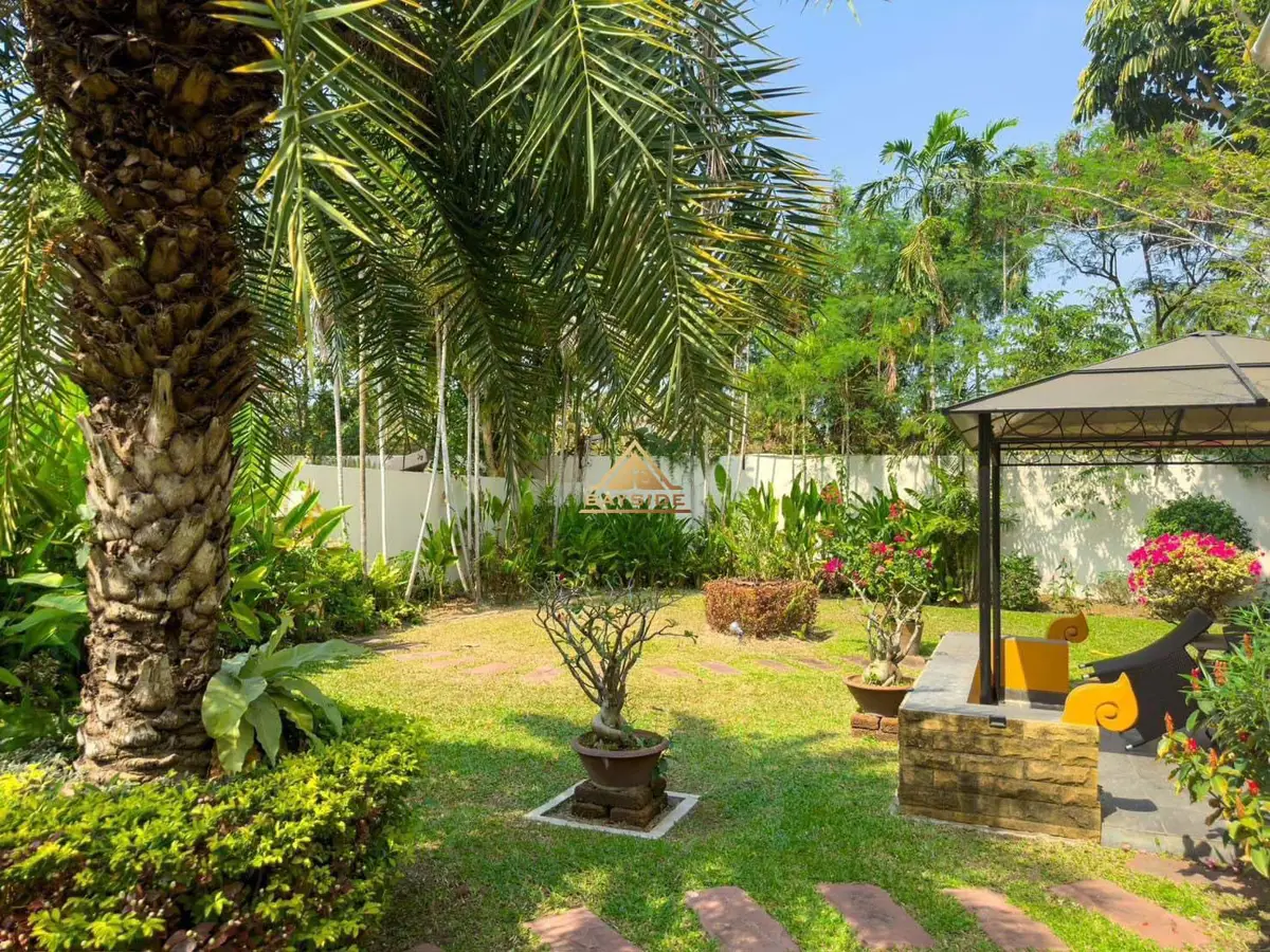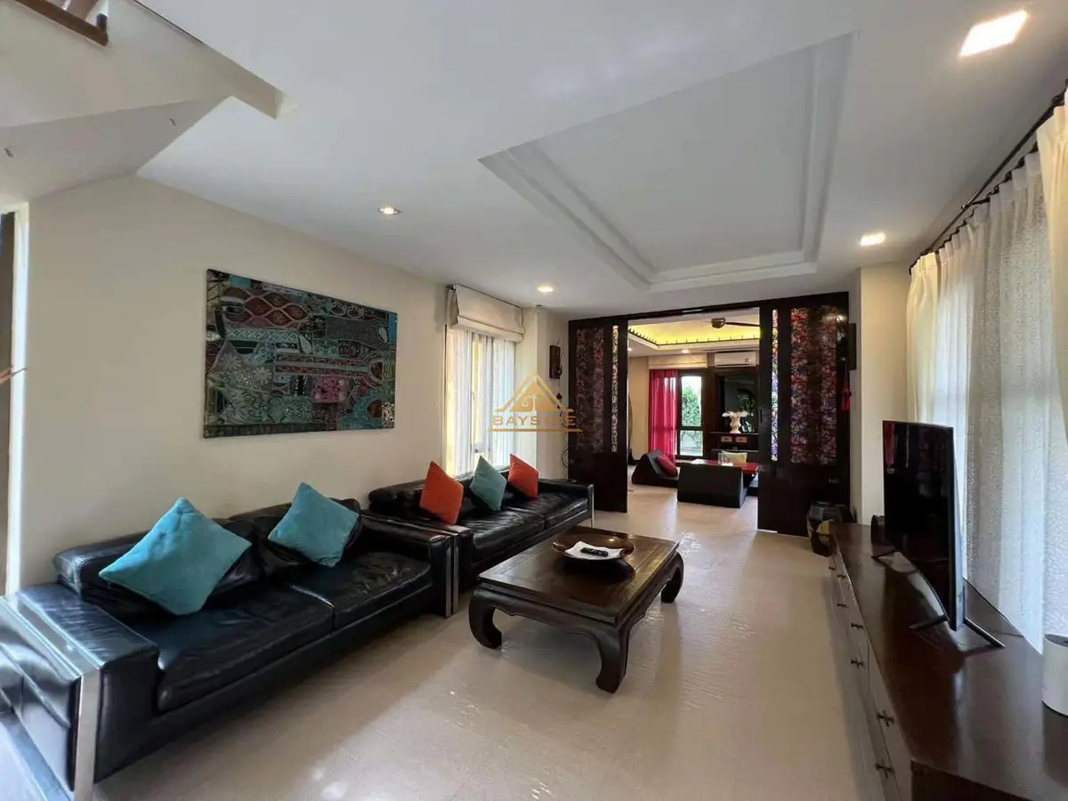 The house is 4 bedrooms, 4 bathrooms, 2 Storey house, land size is 270 Sqw. or 1,080 Sqm., Fully furnished, European kitchen, Private swimming pool, Living area !!