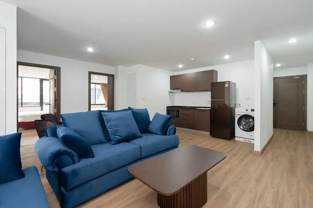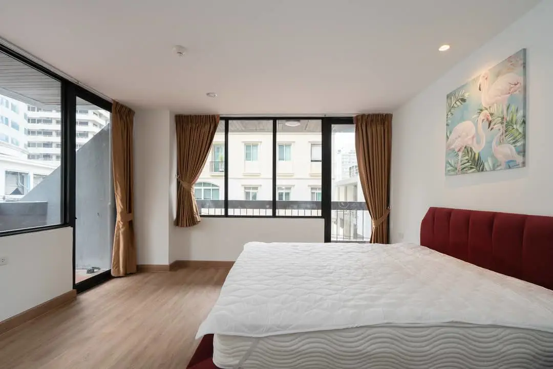 This is a 3 bedroom, 3 bathroom property available to rent at PSJ Penthouse on Sukhumvit 6, Nana. The apartment comes fully furnished and measures 111 sqm. The corner unit property comes with a washing machine, digital door lock, bathtub and large balcony.
