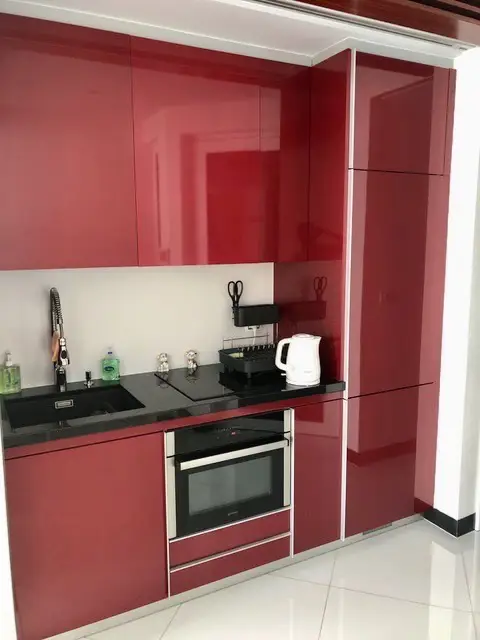 3 bedrooms, including one self-contained studio with its own bathroom and a striking RED kitchen