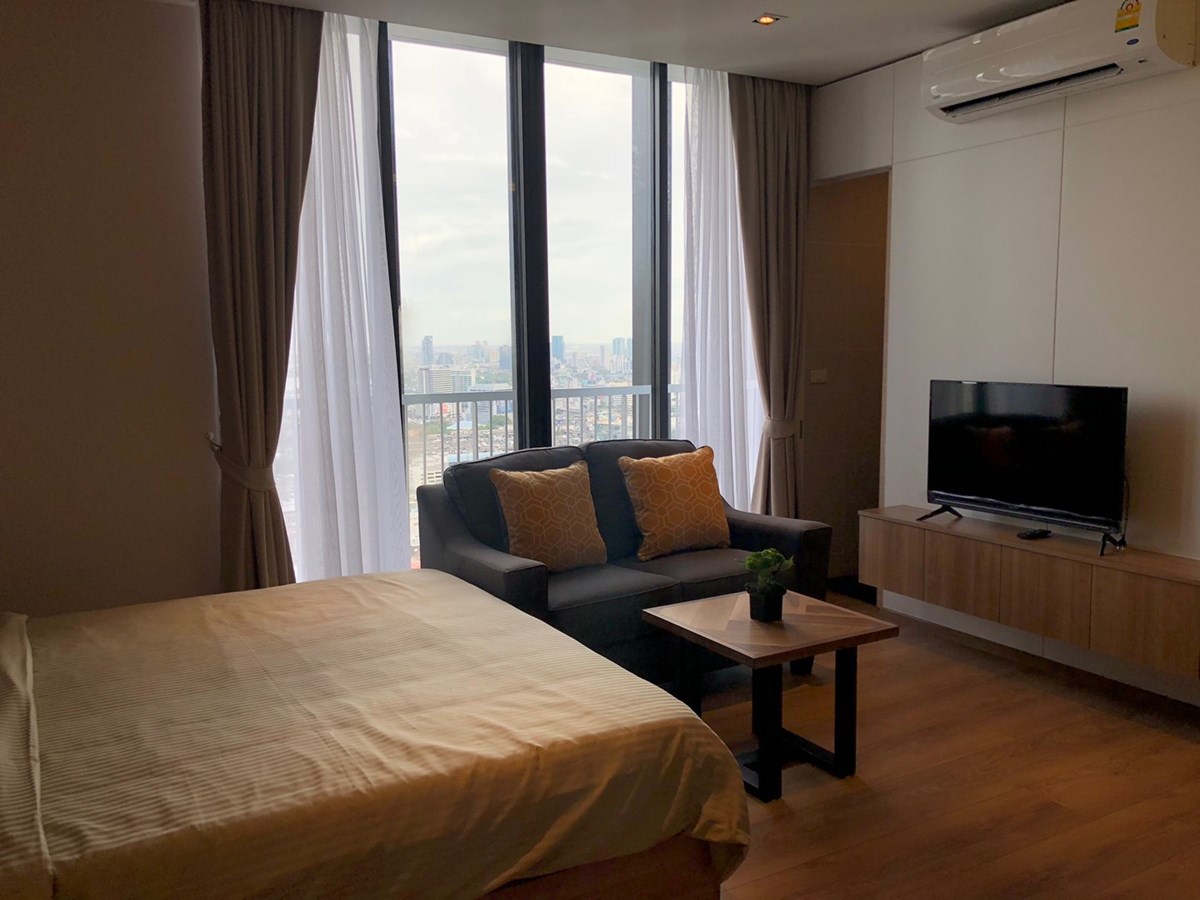 This studio condo is now available to rent at Park Origin Phromphong (Park 24) between Sukhumvit 22 and 24. The property measures 35 Sq.m., is fully furnished in a modern style and is on the 36th floor of Building 2. The building has a swimming pool and a great fitness center as well as parking and security service, and the Phrom Phong area is home to two luxury shopping malls, K Village Communirty Mall, Benjasiri public park and loads of great places to eat, drink and relax.