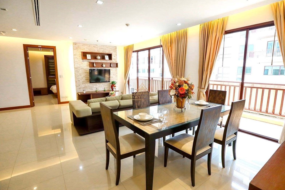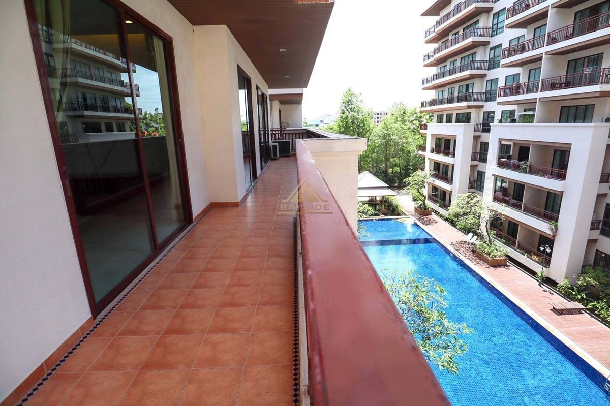 This condo close to South Pattaya Road , The unit come with 2 Bedrooms 3 Bathrooms also has washing machine, European kitchen, Fully furnished, Bath tub, Living area is 135 sqm !! and big balconies with pool view