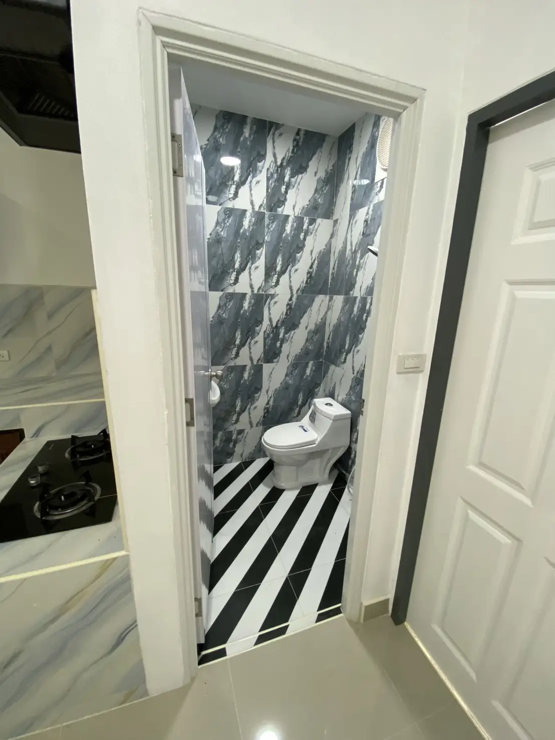 Upstairs, the parking space is a sitting area with a view and could be converted into a bedroom in the future. Parking in front of the house is available