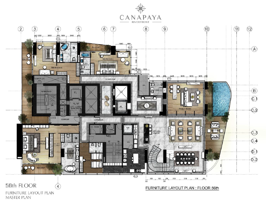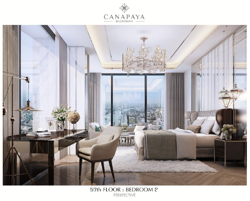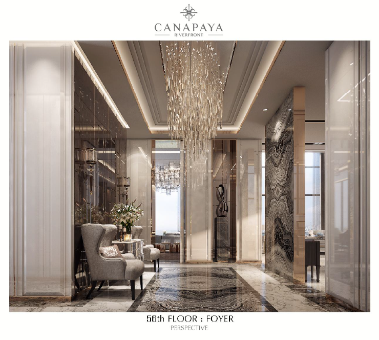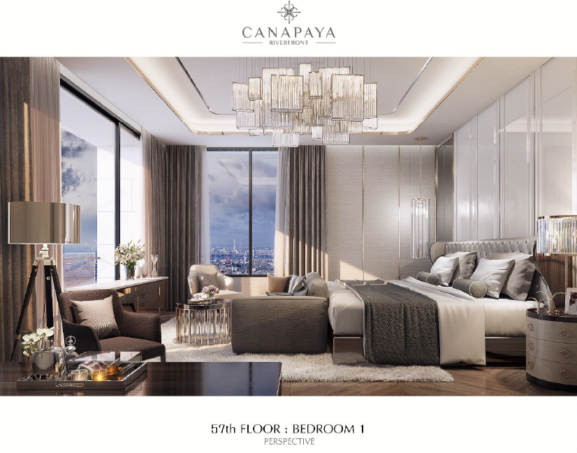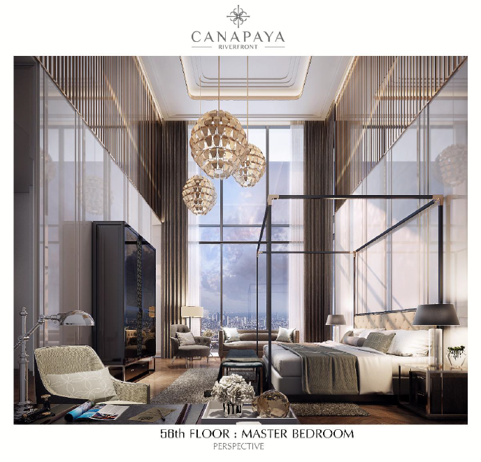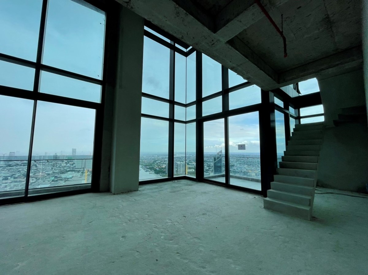 On the market for sale at Canapaya Residences is this incredible bareshell penthouse. The duplex property can be configured to have 5 bedrooms and 7 bathrooms, but this is flexible. The freehold condo measures a very spacious 900 sqm (9687 Sq. ft) and has stunning river views from the 56th and 57th floors of this modern, luxury high-rise condominium on the bank of the Chao Phraya River. Canapaya Residences has some of the best facilities in Bangkok, including swimming pool, gym, lounge, sauna, playground, garden and BBQ area, parking, boat pier and security service. Canapaya Residences is also a pet friendly condominium, so dogs and cats are welcome.
