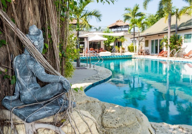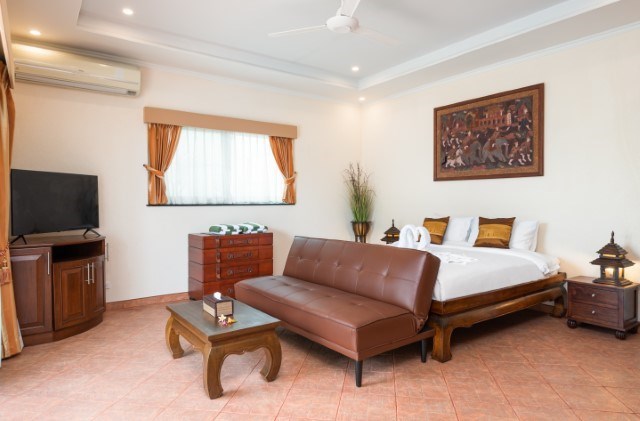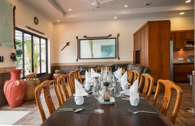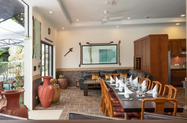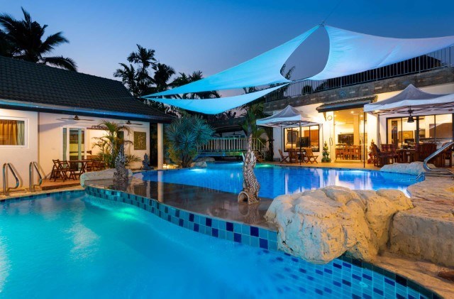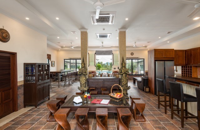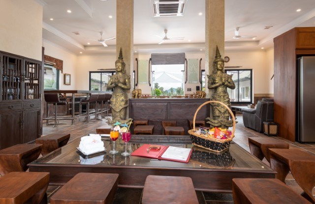 7 bedrooms, 8 bathrooms, 7 kitchens, teakwood furniture, 6 kingsize beds, 9 fridges, 7 sofas, 9 aircons, 22 ceiling fans, all LED lights, 3 rooftops (gym, massage, bar) with 2 bridges ,100 m2 clubhouse (bar, lounge, kitchen, dining), 2 store rooms, 2 water tanks, 4 water pumps, big waterfall, 3 car parks, private water well, scenic view over the lake to Golden Buddha Hill,