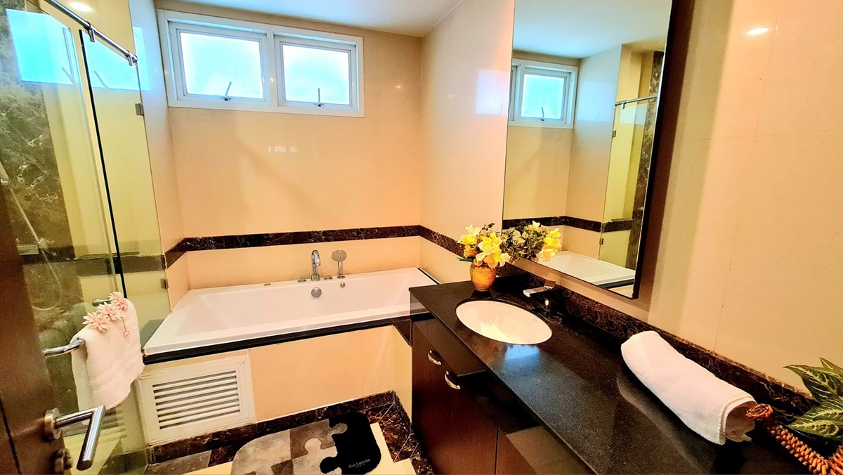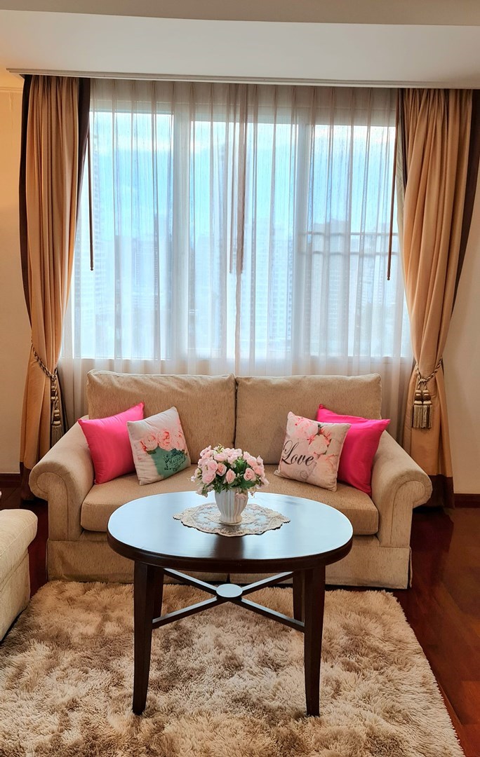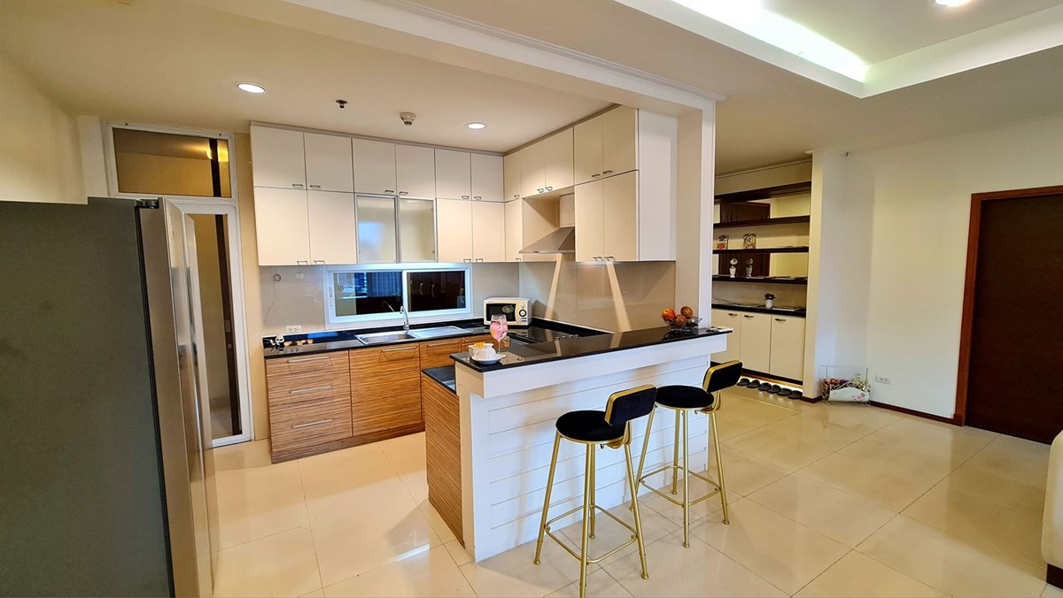 This is a spacious 3 bedroom, 3 bathroom apartment for rent at Piyathip Place in Bangkok's Phrom Phong district. The fully furnished property measures 289 sqm. Piyathip Place boasts some of the best facilities in the area, including swimming pool, gym, sauna, squash court, basketball court, playground, jogging track, library, salon, restaurant, parking, security service and shuttle service. The local area is home to numerous schools, healthcare facilities, restaurants and shops, as well as Emporium and Emquartier luxury shopping malls, Benjasiri Public Park and Phrom Phong BTS Skytrain Station.