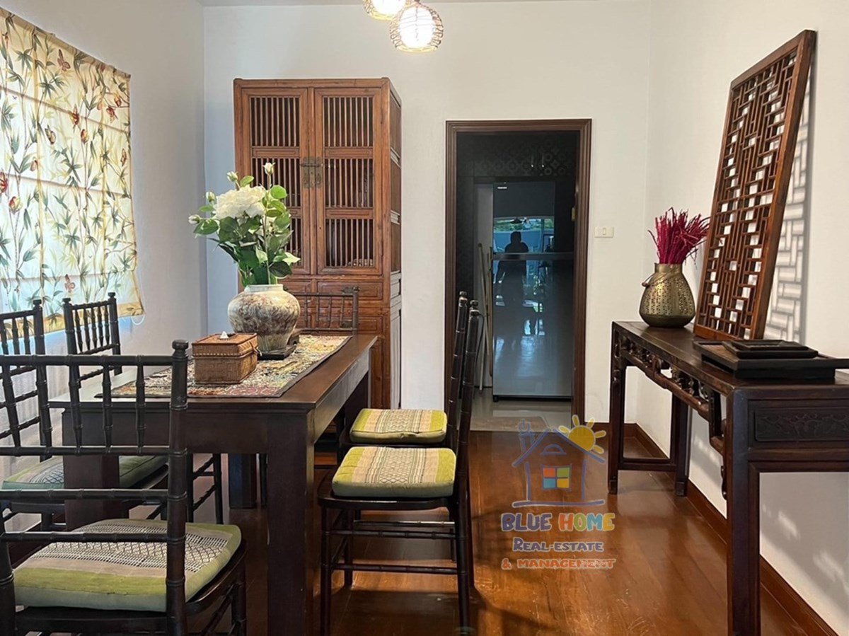 Pool Villa, Soi Thappraya. 100 sq wa/400 sq m. 3 bedrooms, 2 bathrooms, fully furnished. There are several air conditioners throughout the house, European kitchen, Privat swimmingpool. 5 min from Pattaya & Jomtien. Walking distance to the Pratamnak area and 5-star dining and to Khao Big Buddha. Pattaya Park, Yin Yom Beach, Jomtien Beach is only a few minutes away. Walking Street, Pattaya City Hospital, Central festival & Pattaya Beach is also only a few minutes away.