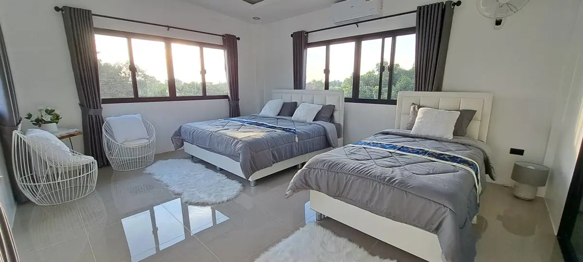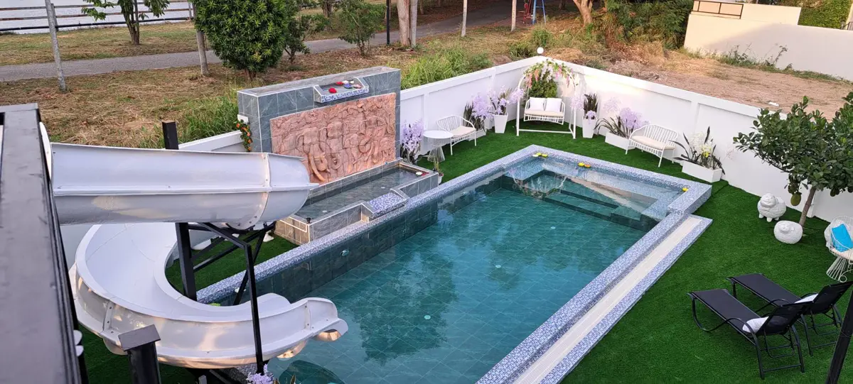 Pool villa newly renovated great for family or daily rental bussiness. Right by the edg of beautiful 3200 sqm lake and public park.