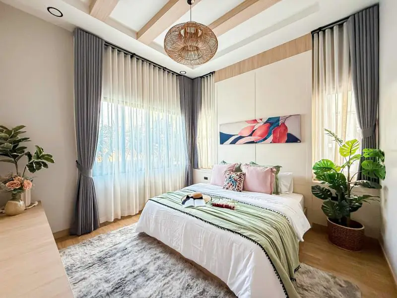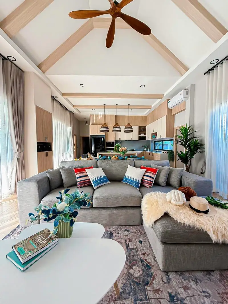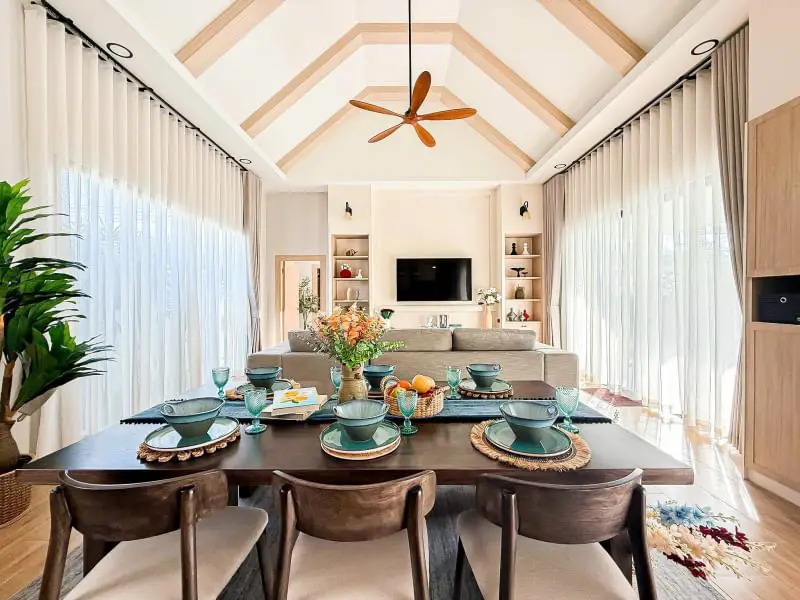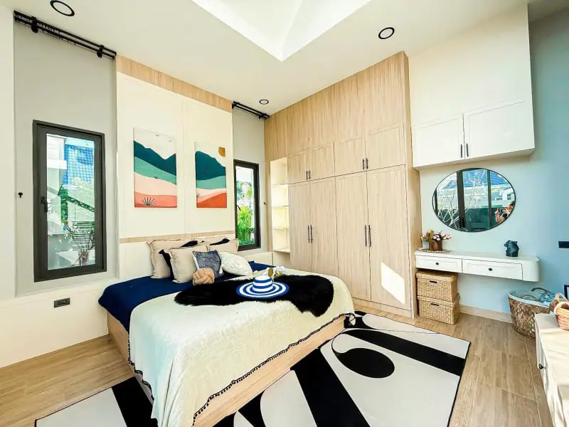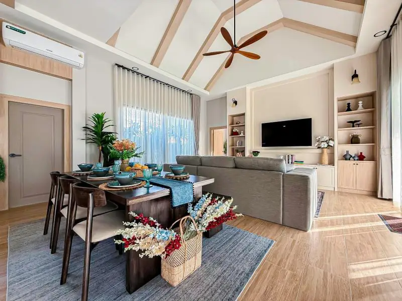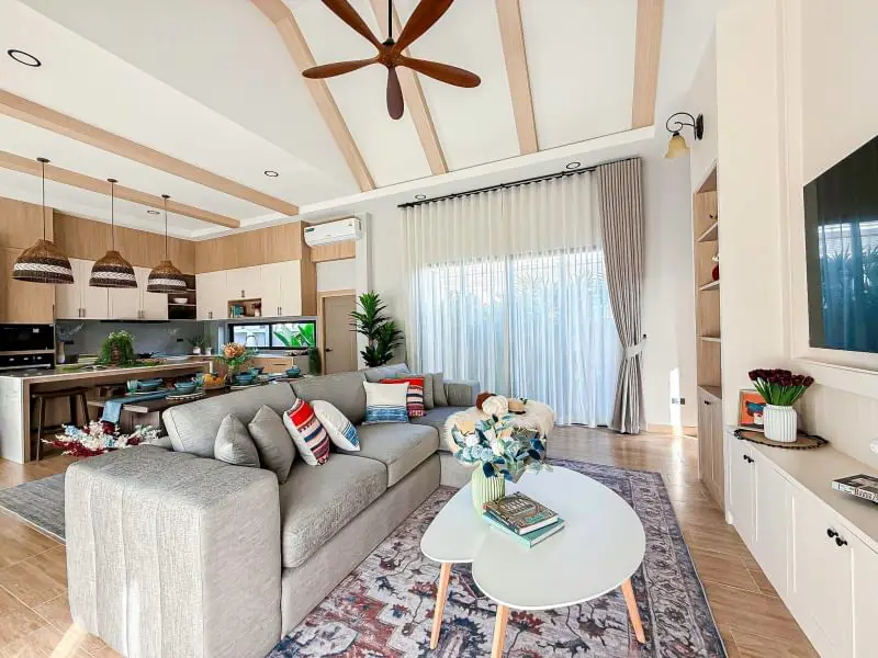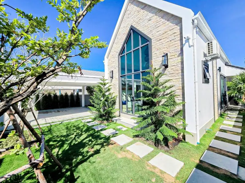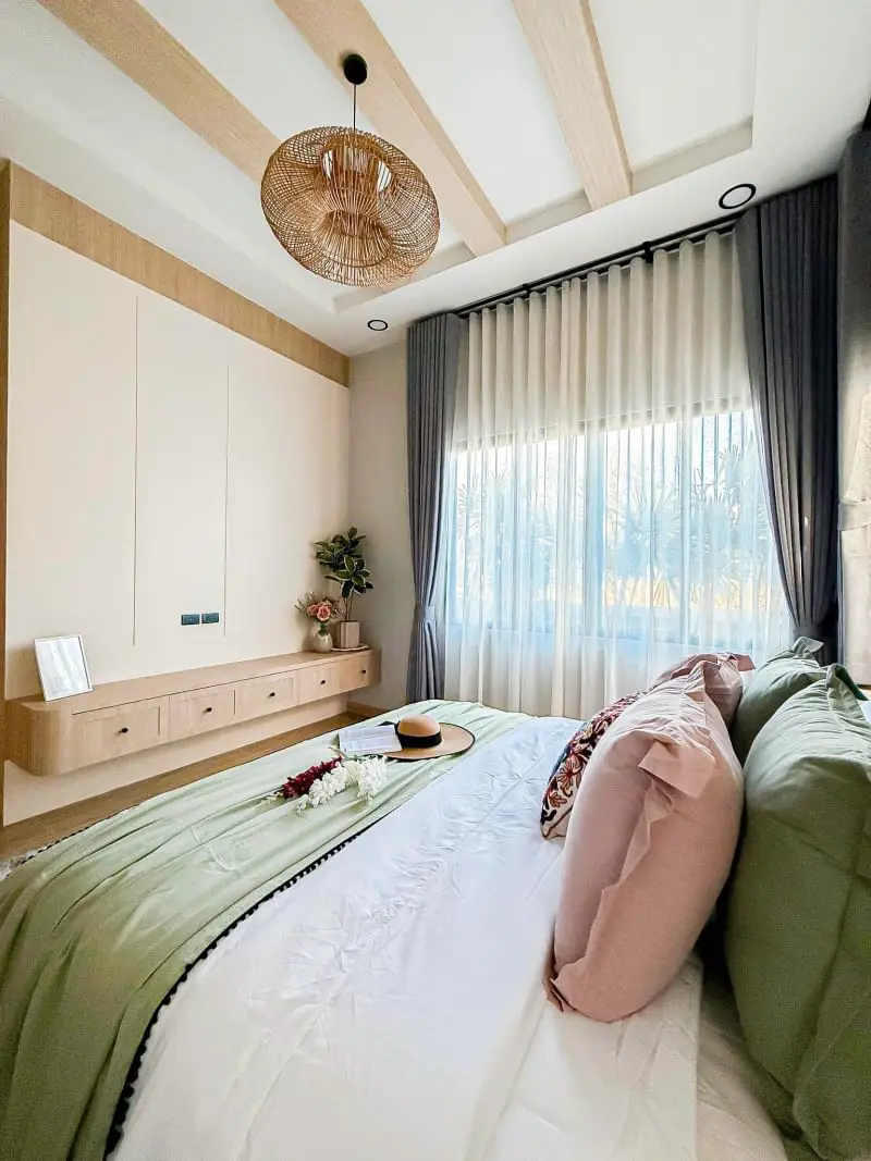 Escape to your own private oasis in this charming 3-bedroom, 4-bathroom single-story detached pool villa in Mabprachan. The American farmhouse style creates a warm and inviting atmosphere. Enjoy relaxing days by your private 3x8m swimming pool or entertaining guests in the spacious living room. The fully furnished interiors ensure a seamless move-in experience. A well-equipped kitchen and two parking spaces add to the convenience. Land size ranges from 102-116 sq.w. Starting price: ฿10.99 million. Contact us to schedule a viewing.