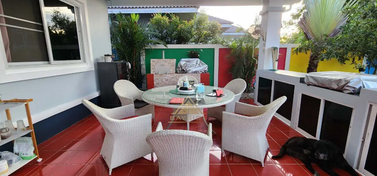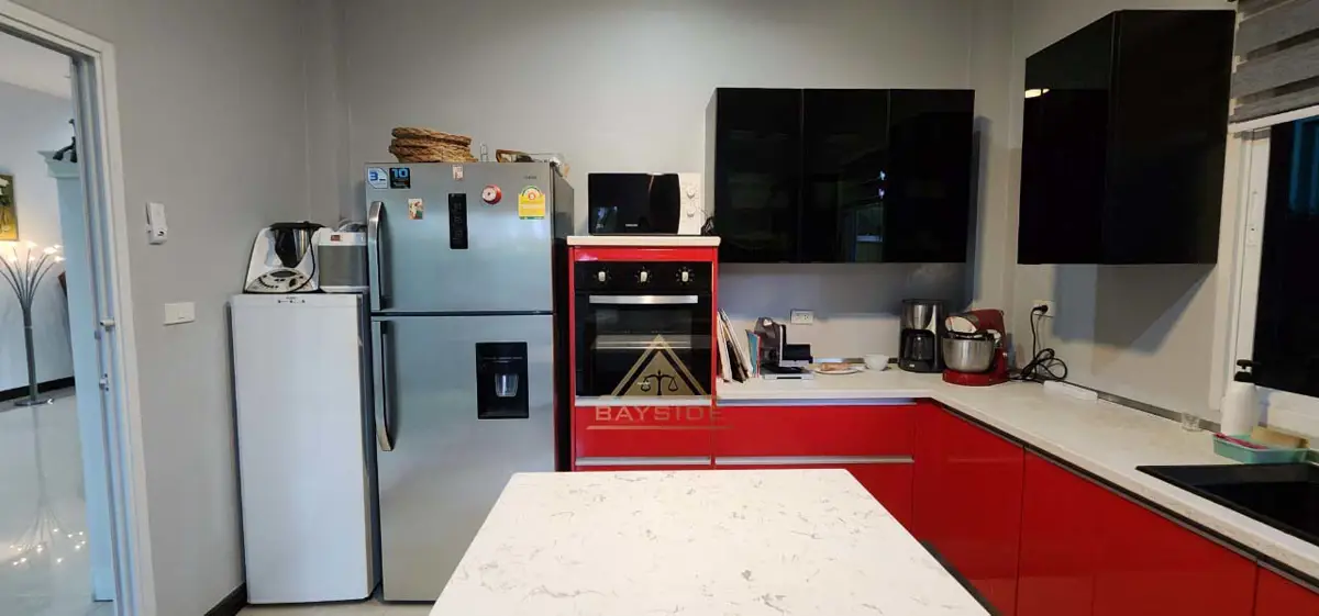 1 store room, kitchen , leather sofa, and all super quality furniture, pizza oven, barbecue area, thick walls with double cavities, insulated roof and windows, salt water Swimming pool with 4 year Gurantee, newly painted this house is worth money.