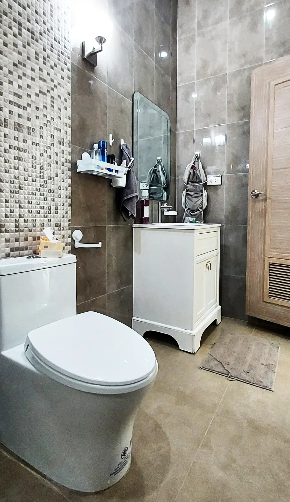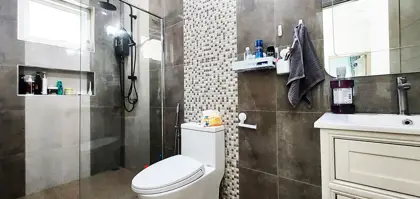 Beautiful and stylish villa, 116 sq.m. consists of 3 bedrooms, 2 bathrooms, living room, kitchen and dining room. There is also a swimming pool. Beside the swimming pool, there is a bathroom with shower (for taking a shower before going into the pool) and a storage room and a pool equipment storage room. In front of the villa, there is a terrace of 11 sq.m. and on the side there is a parking lot that can park 2 cars (21 sq.m.).