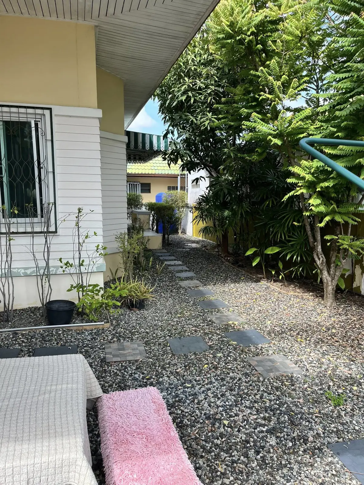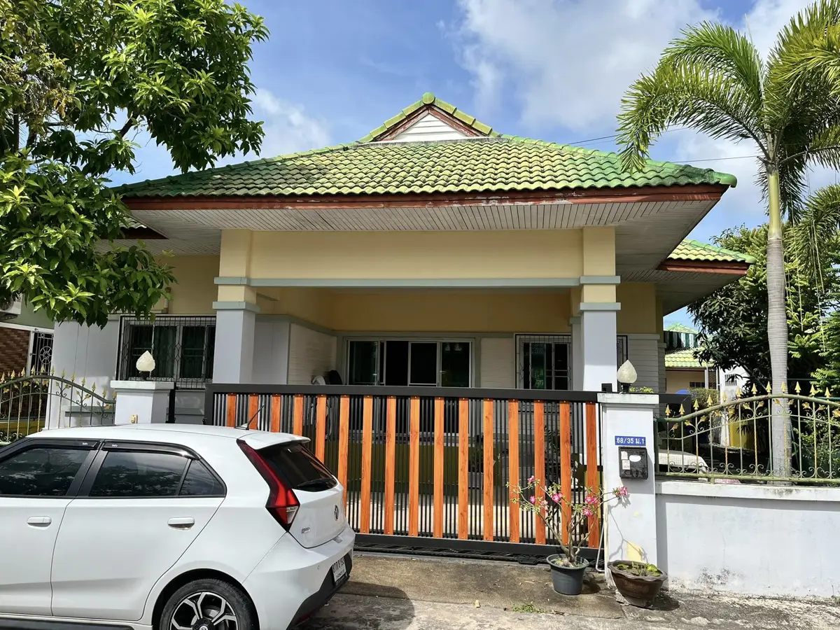 Single-storey detached house, area 74 square wah, 3 bedrooms, 2 bathrooms, crocodile farm side, through to Krua Pa Boon, international school, Department of Land Transport
