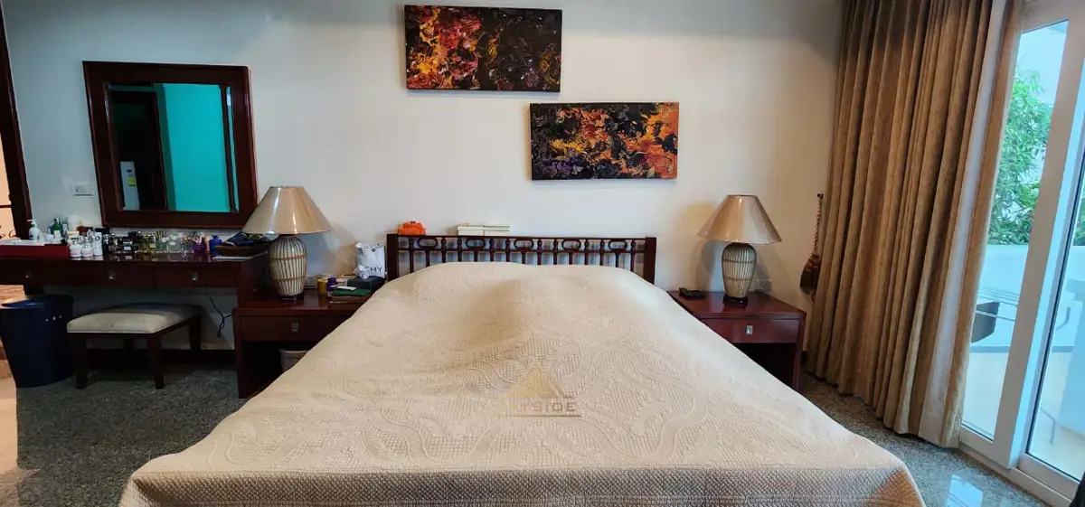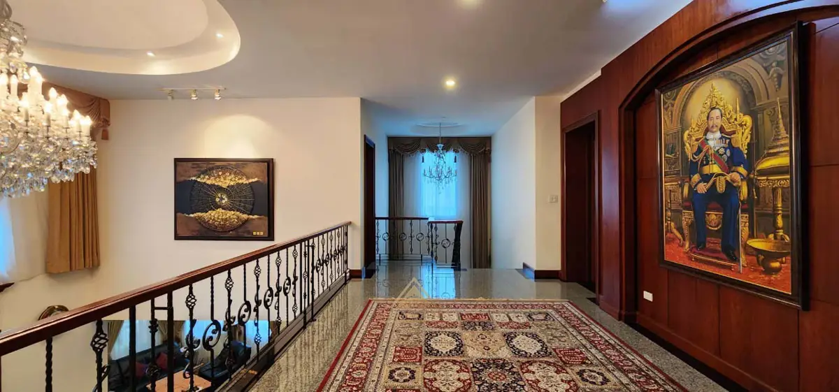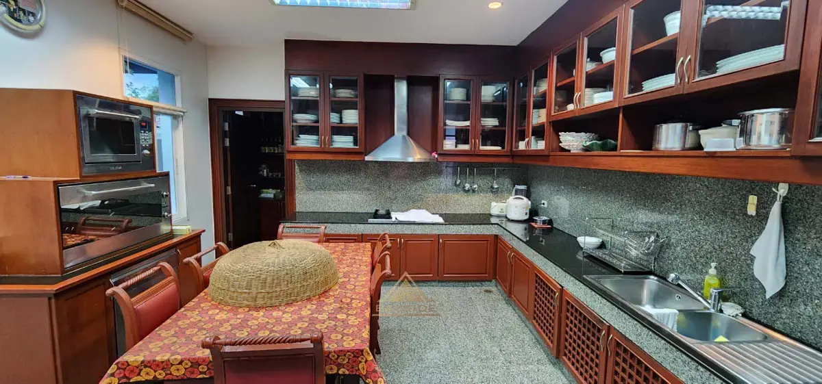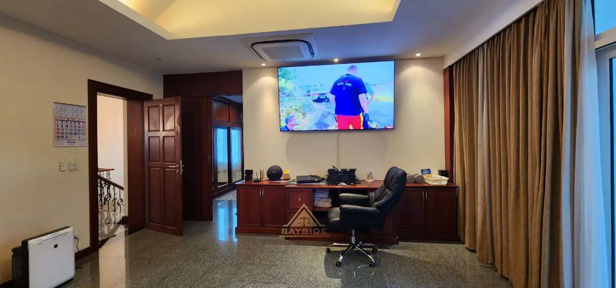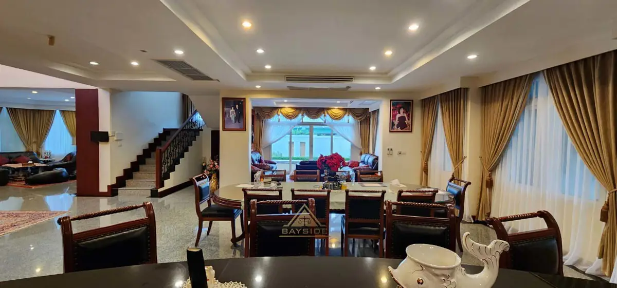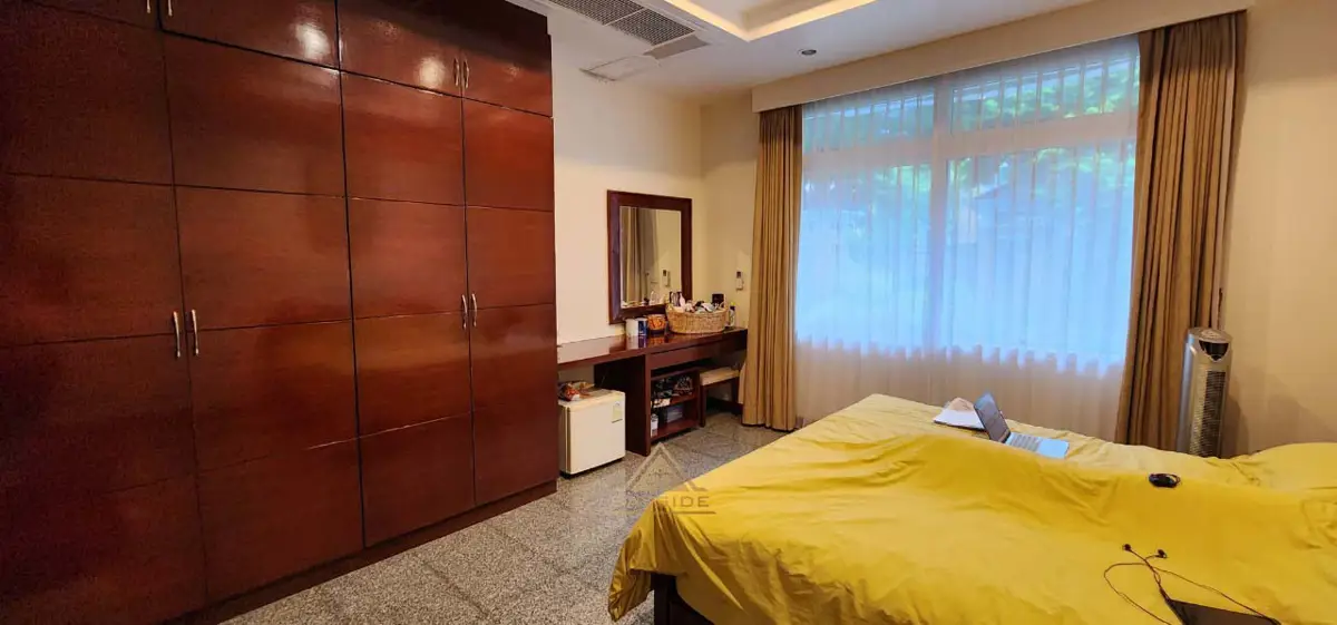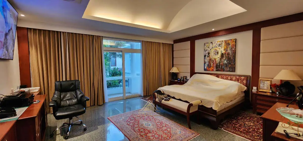 -Ground Floor / Outdoors have 2 Living areas, 1 Bedroom, Movie Theatre, High Tech Private Bar, 2 Pool View Guest Bedrooms with attached bathrooms, Fish Pond in the entrance, European and Thai Kitchen, Laundry room along with servant quarters.