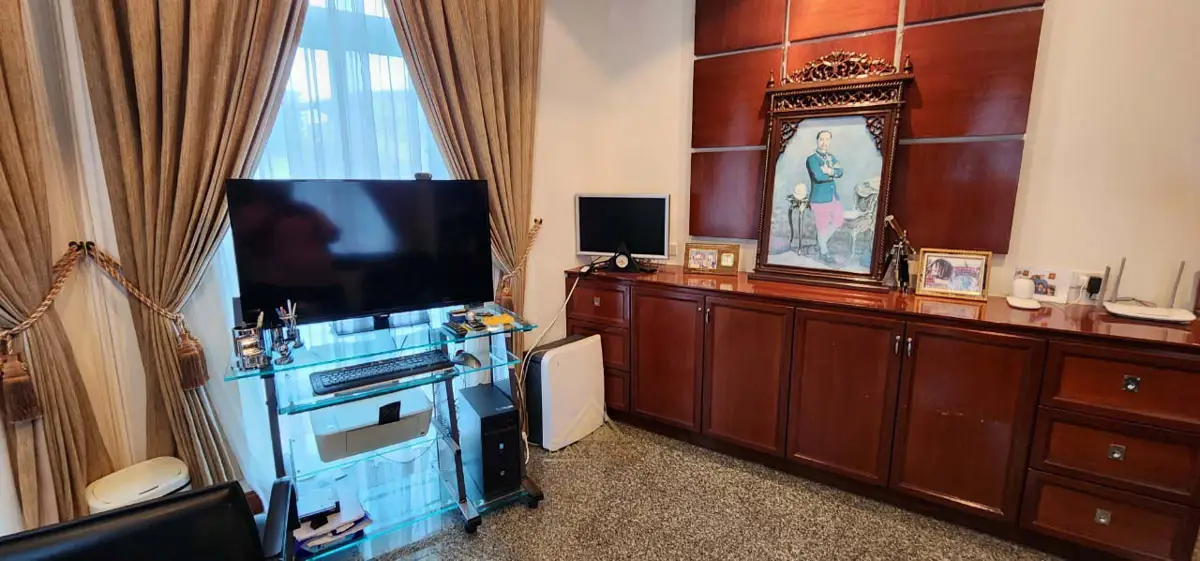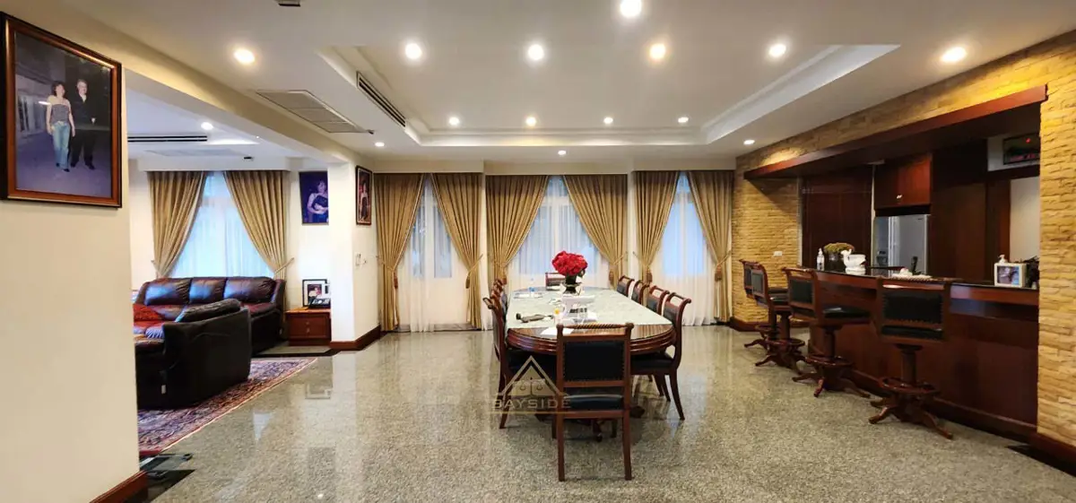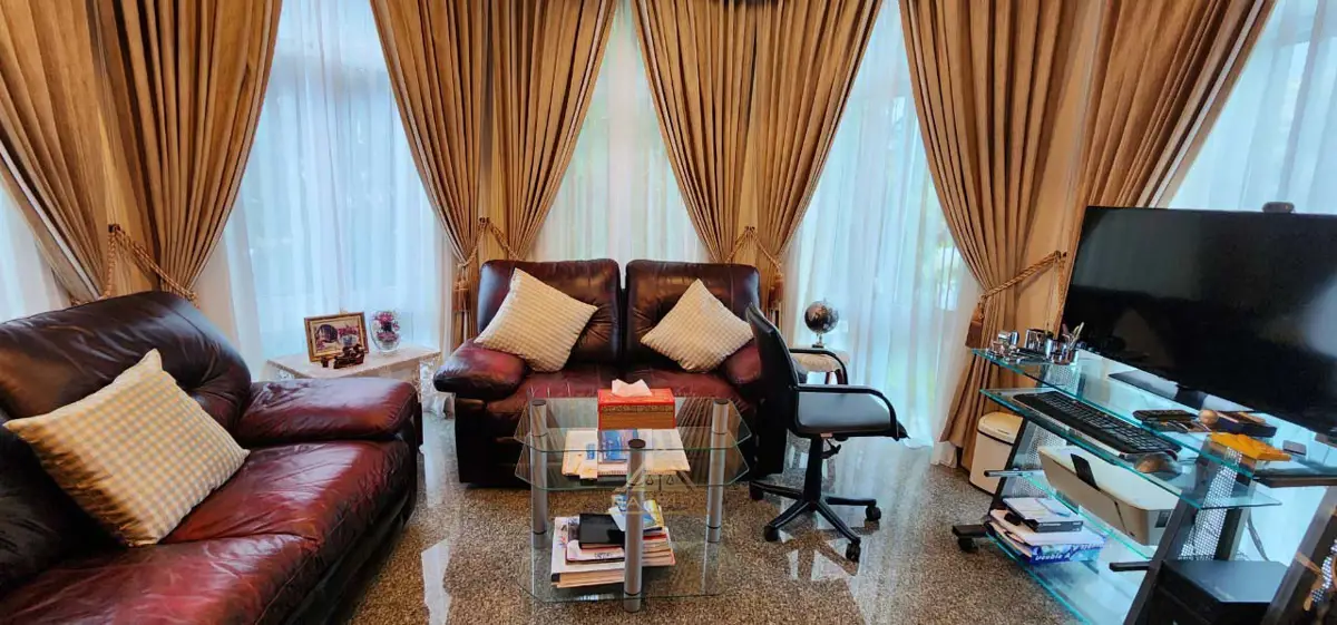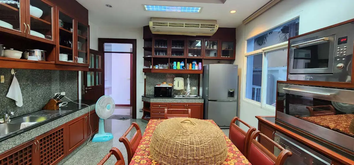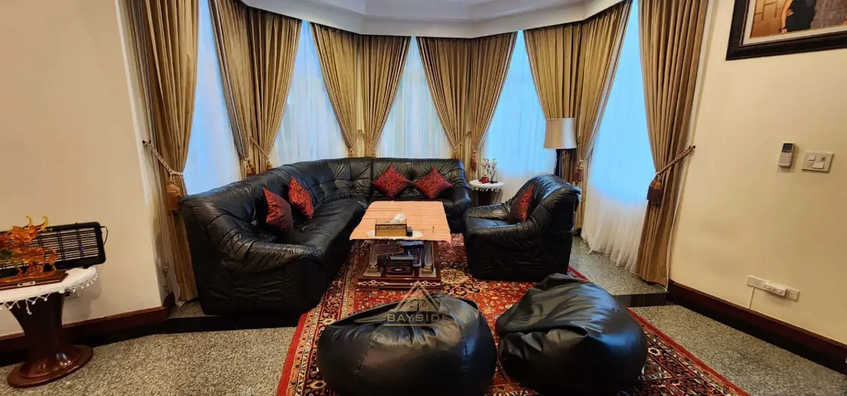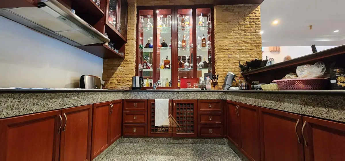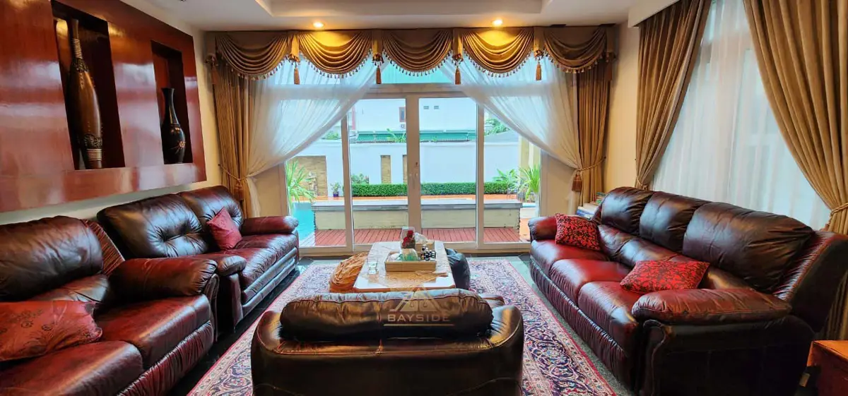 -Ground Floor / Outdoors have 2 Living areas, 1 Bedroom, Movie Theatre, High Tech Private Bar, 2 Pool View Guest Bedrooms with attached bathrooms, Fish Pond in the entrance, European and Thai Kitchen, Laundry room along with servant quarters.
