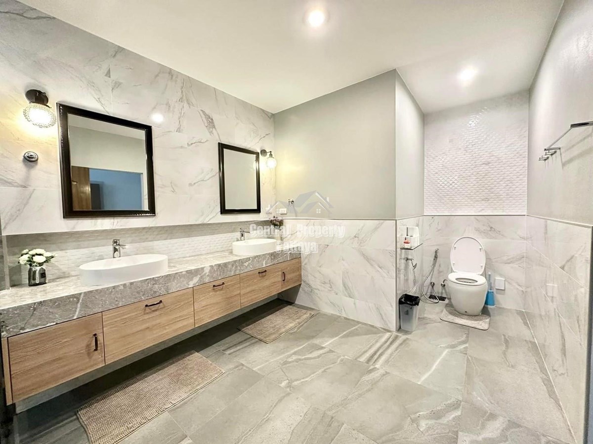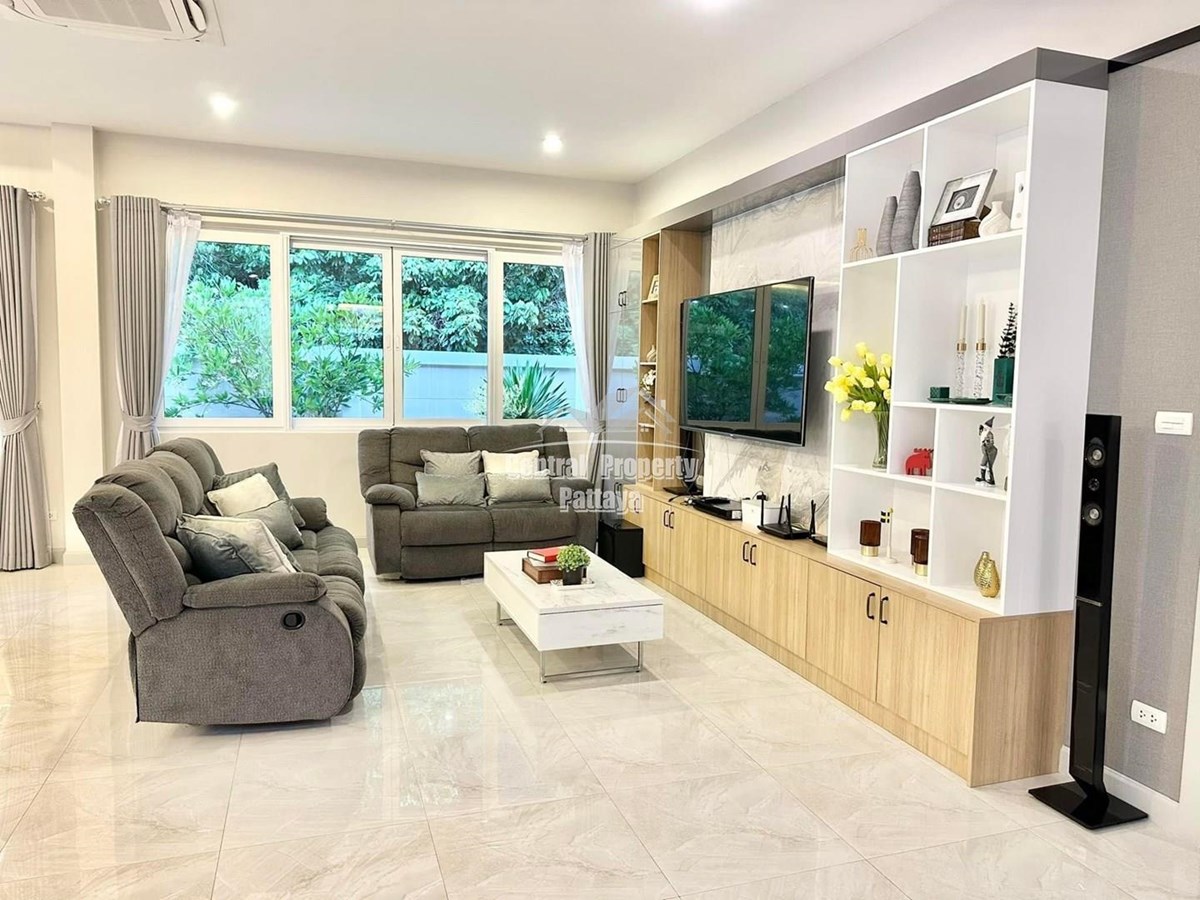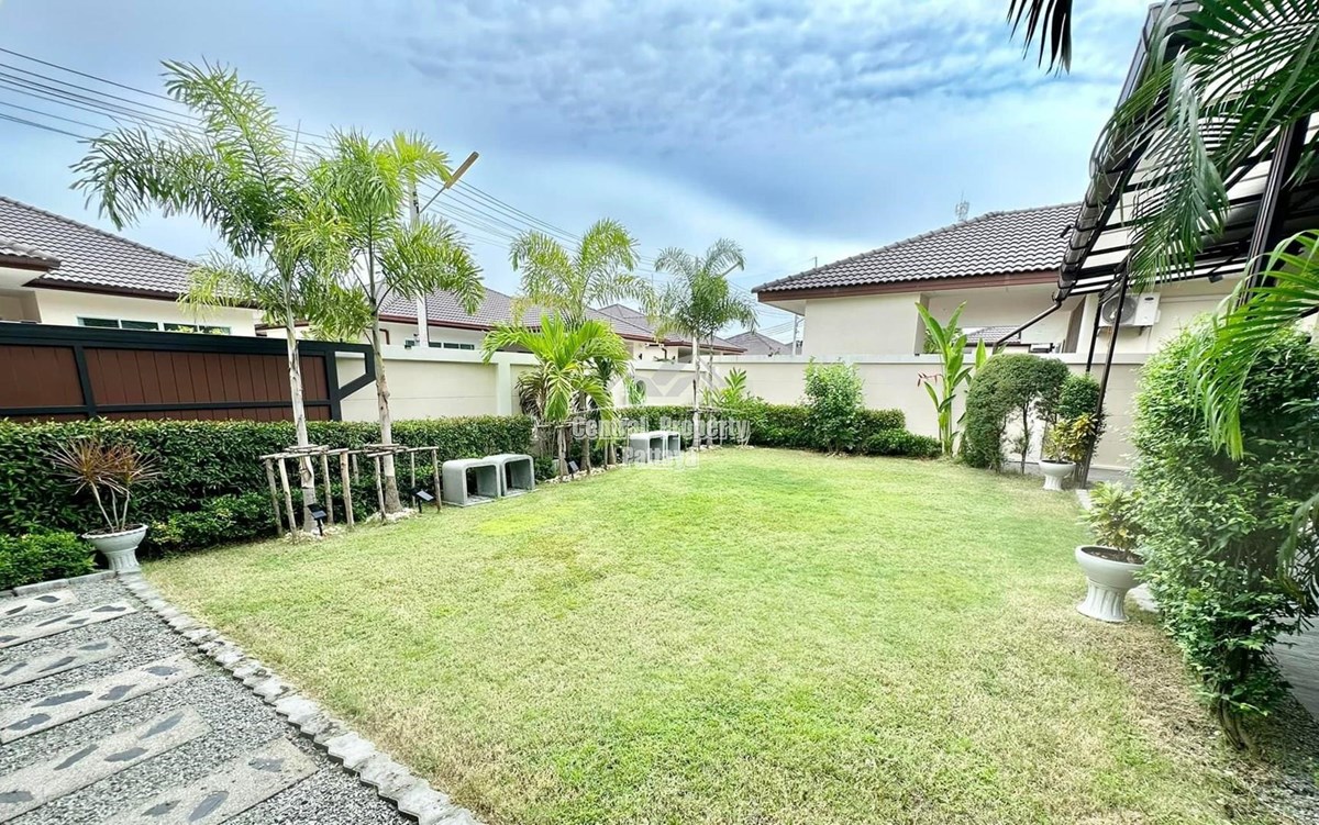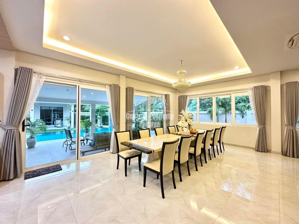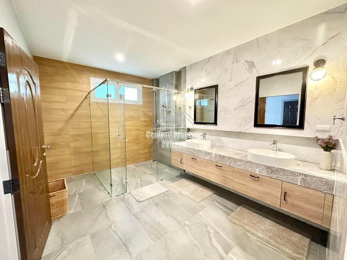 A stunning 6 bedroom, 7 bathroom house with large private pool for sale in Thai/company name centrally located in Huay Yai. This home has been recently renovated to a very high European standard and is fully furnished, including storage, wardrobes, and a large European family kitchen. The bathrooms are modern and spacious, there is also a large salah/hosting area. As well as the stunning 10m x 4m private pool with jacuzzi and a beautiful pool deck this house also has an al-fresco living area which is perfect for entertaining, as well as private parking and a maintenance-free garden.