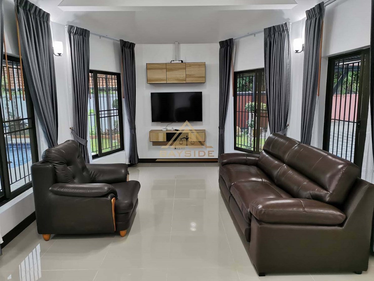 This house is private swimmimg pool, Garden, House is 3 bedroom 3 bathroom, 636 of usable area come with European Kitchen( Electric Hob, Electric Oven, Refrigerator/Freezer, Microwave) , Fully Furnished, Car park !! Dining table