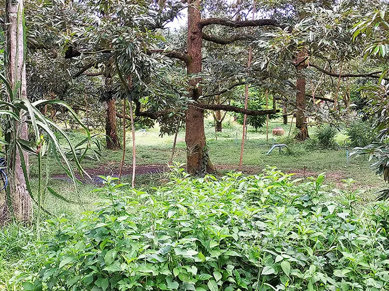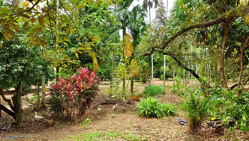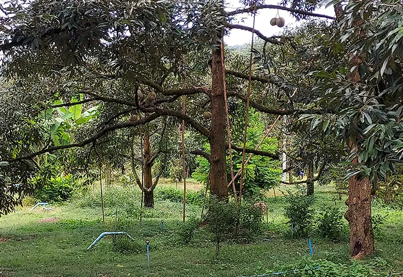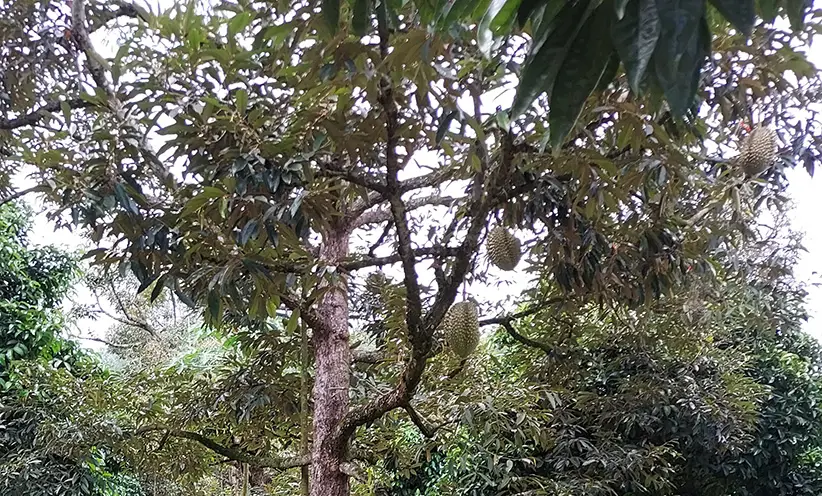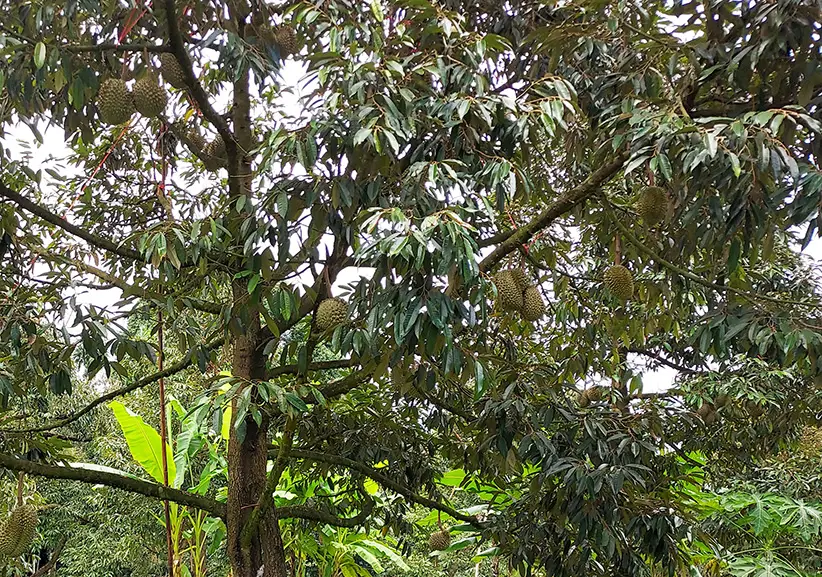 This profitable garden has durian as the main source of income, but also has the fruits longgong, mangosteen and mak.