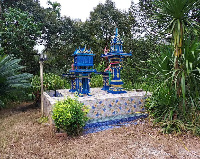 The front is adorned with a fish pond, as well as a Buddha site. There is also a garage and storage building with 4 places.