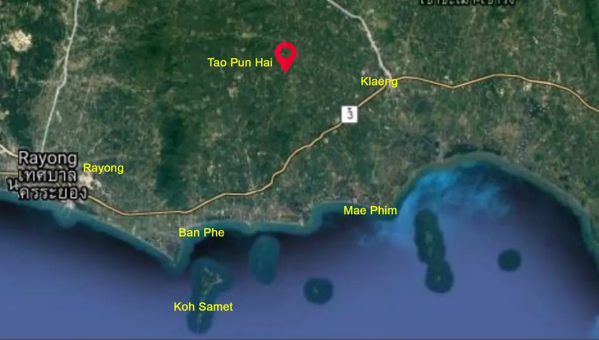 The garden is located in the village of Tao Pun Hai west of Klaeng, Rayong.