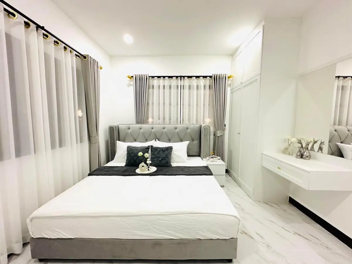 The village offers 24-hour security with vigilant guards, ensuring a safe and secure environment for residents. Whether you're looking for a peaceful retreat or a home with quick access to the city and beaches, this property presents an excellent opportunity. The house is available for sale under Thai ownership, making it a straightforward purchase for local buyers.