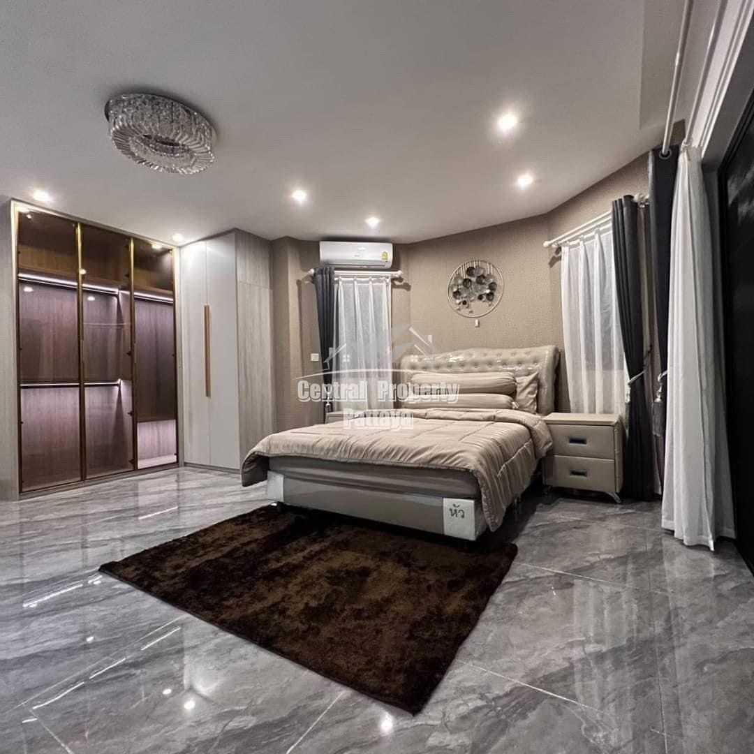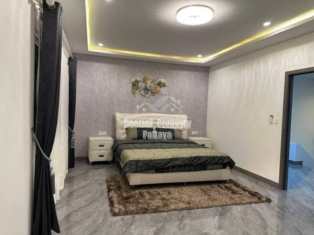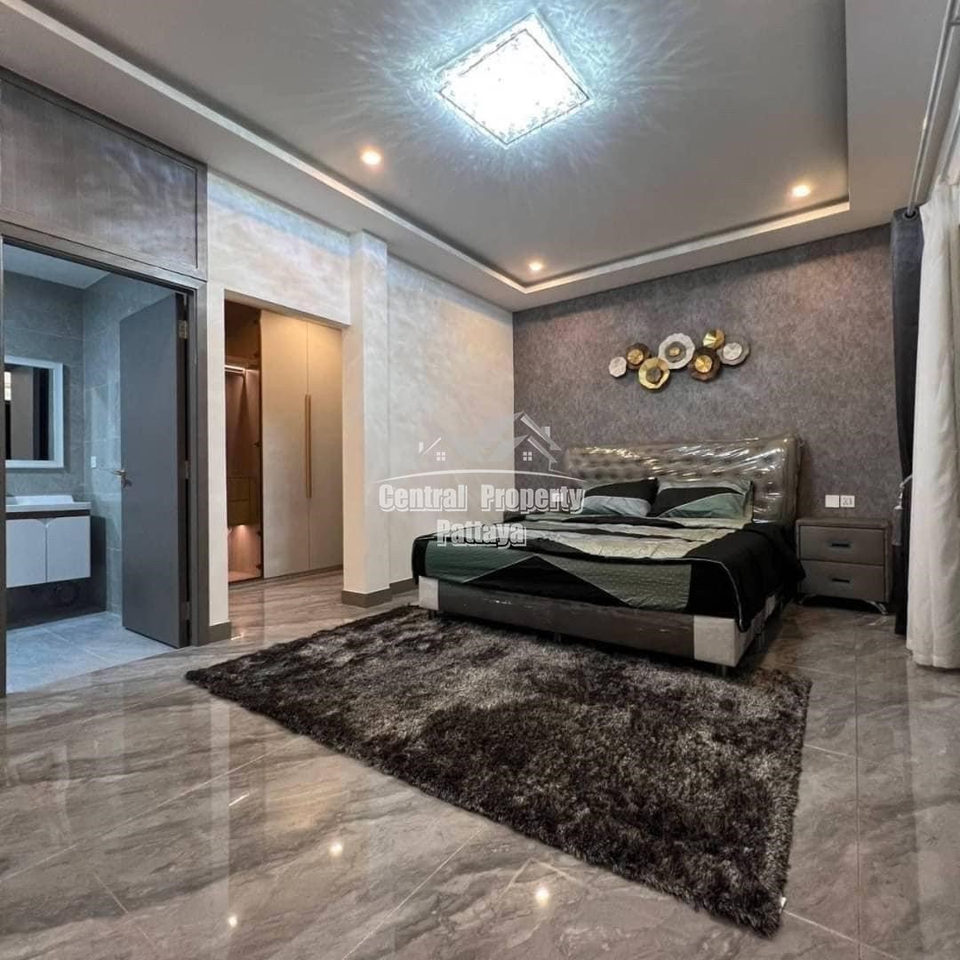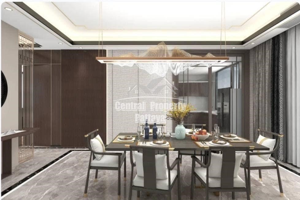 A beautiful, 4 bedroom, 4 bathroom, private pool house for sale in Thai/Company name in East Pattaya. This home has been recently constructed to a very high standard and is fully furnished, including fitted wardrobes and a large European family kitchen with quality appliances throughout. The bathrooms are modern and spacious, there is a generous dining area as well as ample living space.