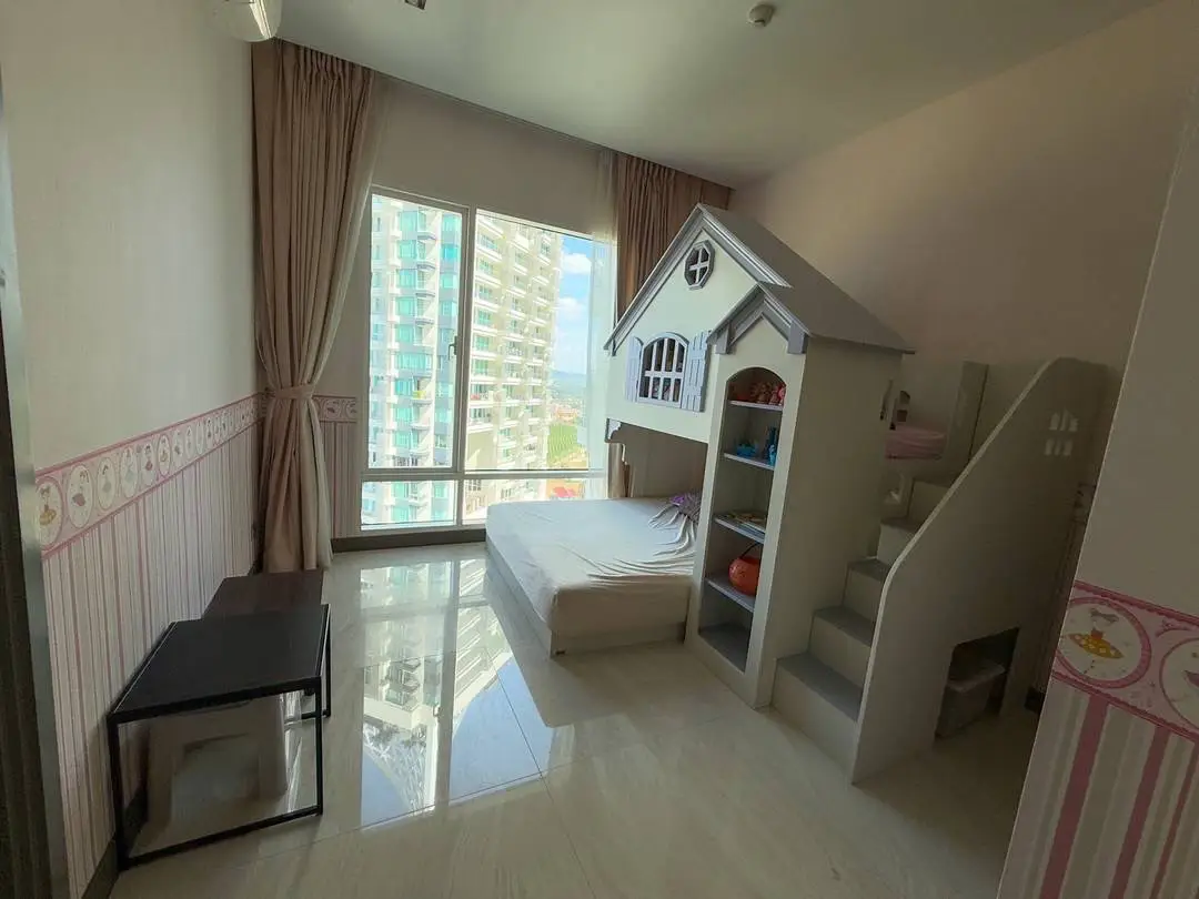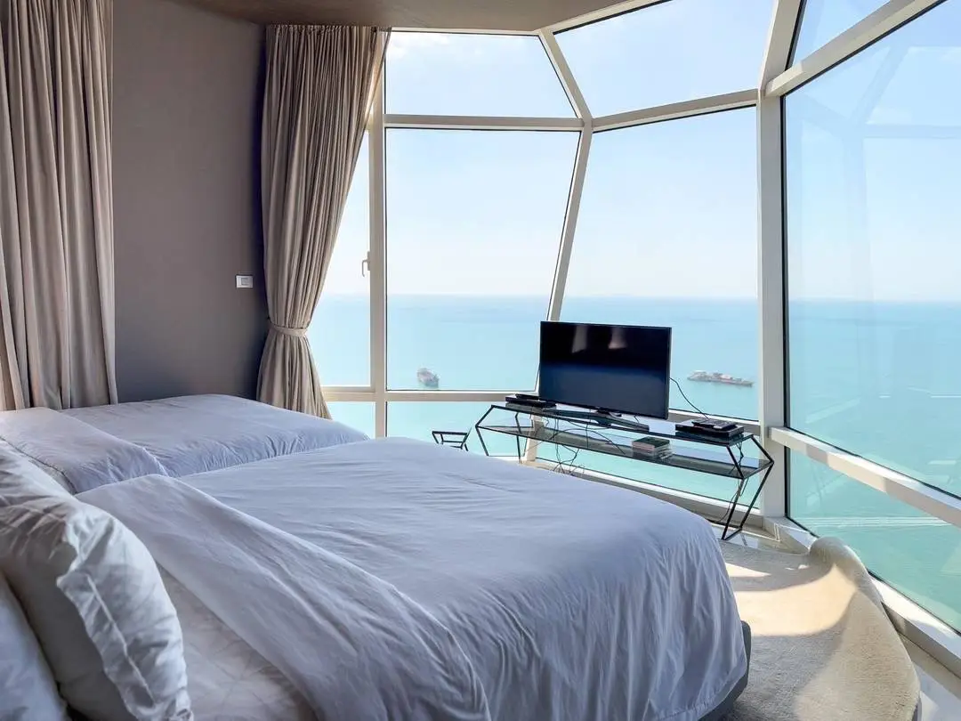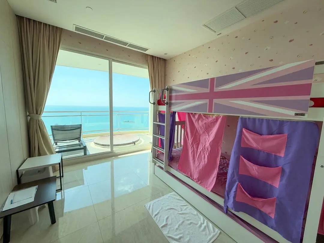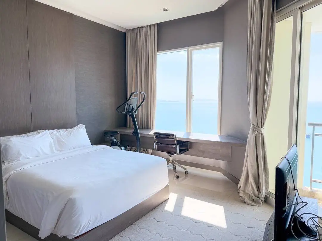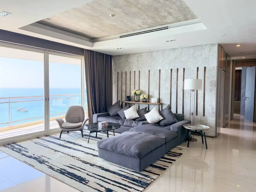 Experience luxury beachfront living in this rare 4-bedroom high-floor corner unit on the 29th floor of Tower A, offering panoramic Pattaya city and sea views.