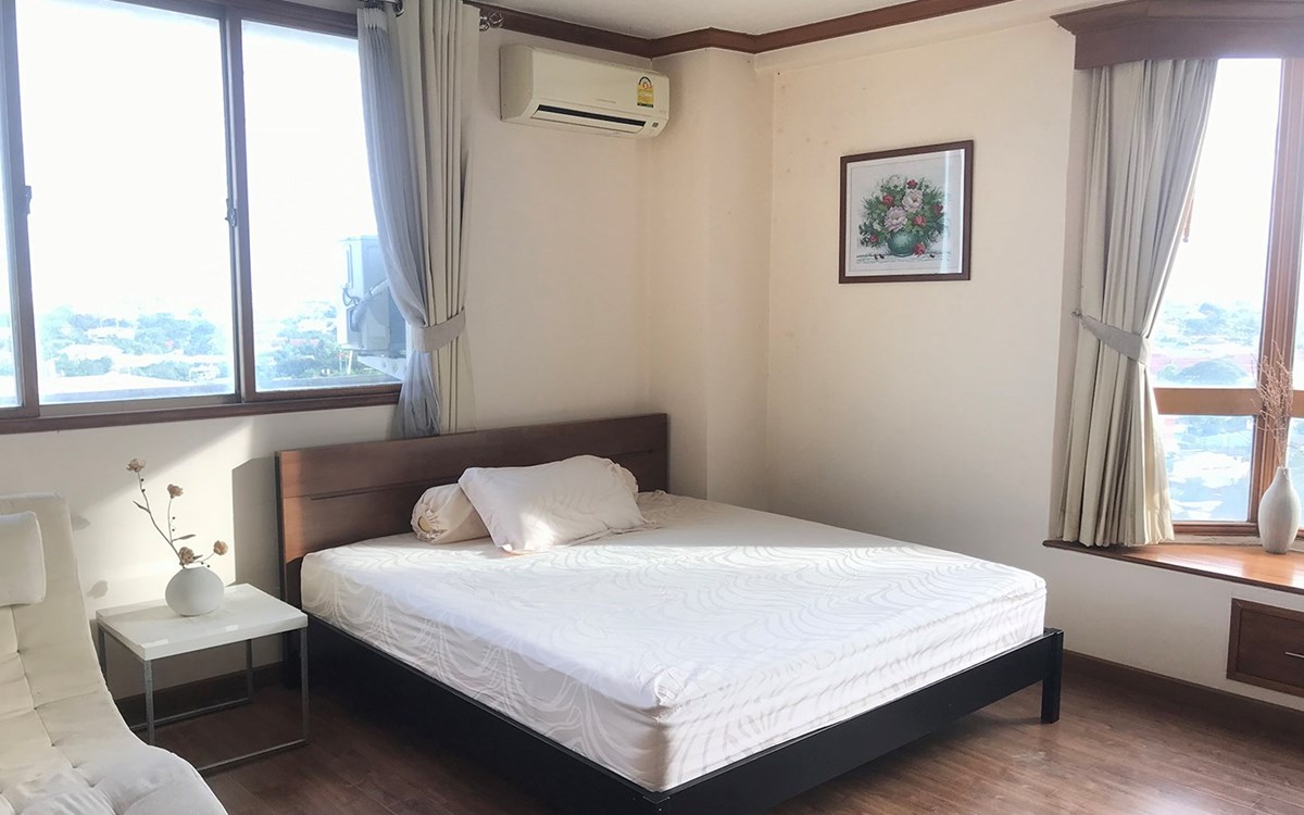 On the market for sale is this spacious 3 bedroom, 3 bathroom condo. The corner unit property measures 215 sqm, has 3 balconies and a working room, and is on the 12th floor with 270 degree views. Royal Castle Pattanakarn has a swimming pool, gym, parking and security service.