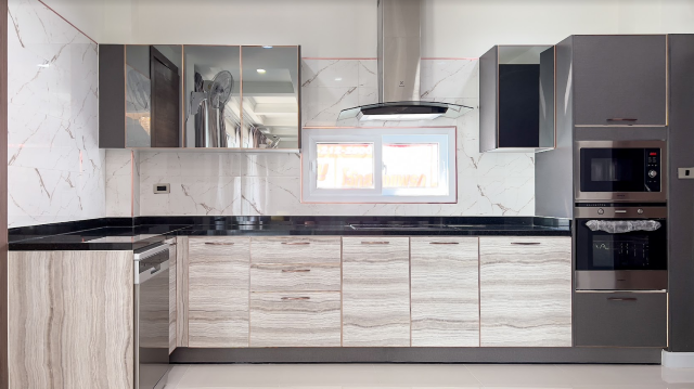 – All countertops (in the kitchen and all bathrooms) are made from high-quality marble, seamless connection.
